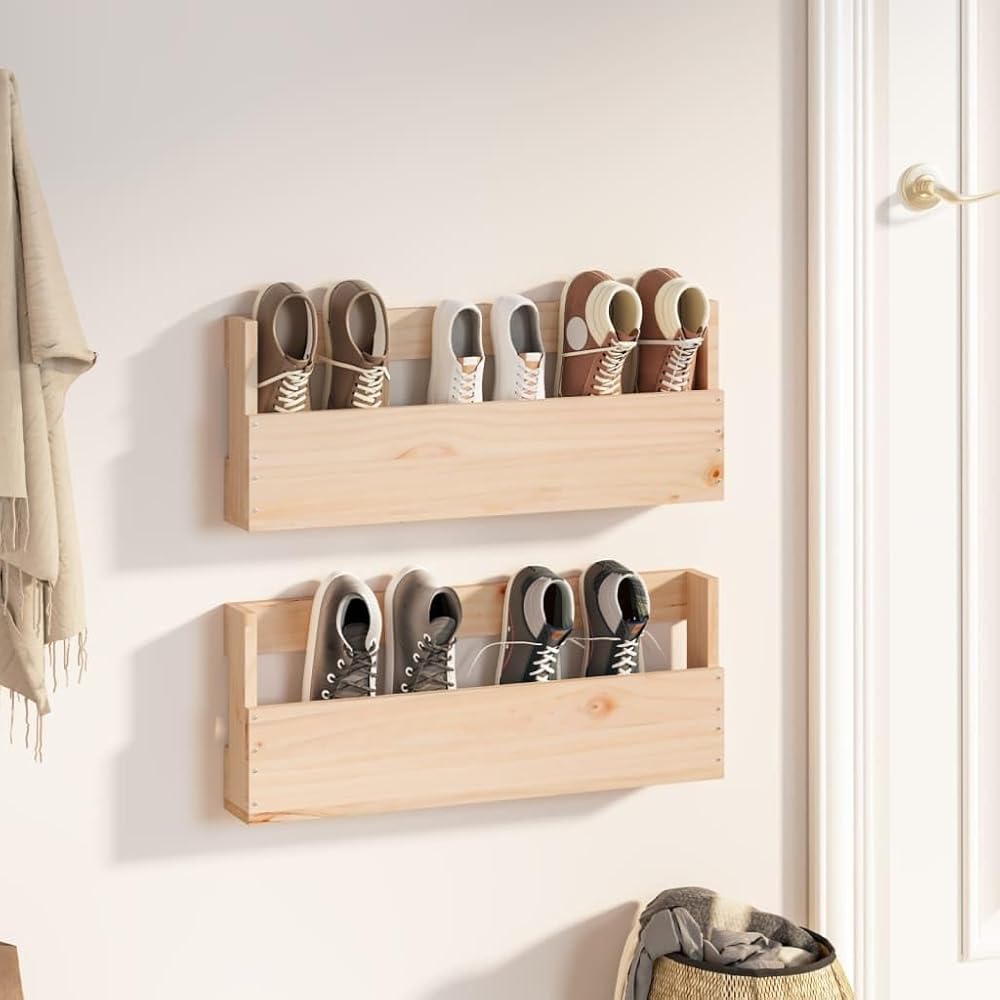 Wall-mounted Shoe Racks 2 pcs 59x9x23 cm Solid Wood Pine,Shoe Storage Organiser,Shoe Stand,Wardrobe Storage Shoe Rack Unit for Hallway Living Room Bedroom Furniture Shoe Racks & Organisers