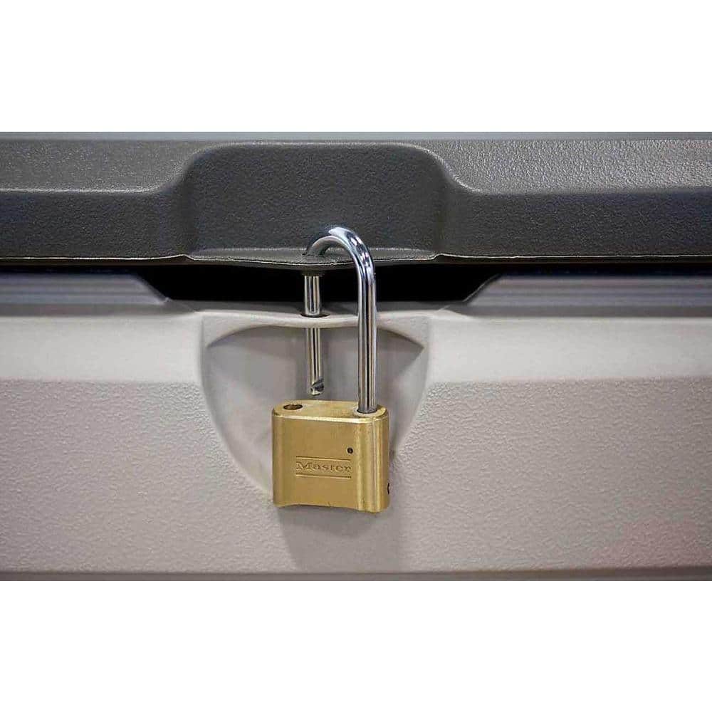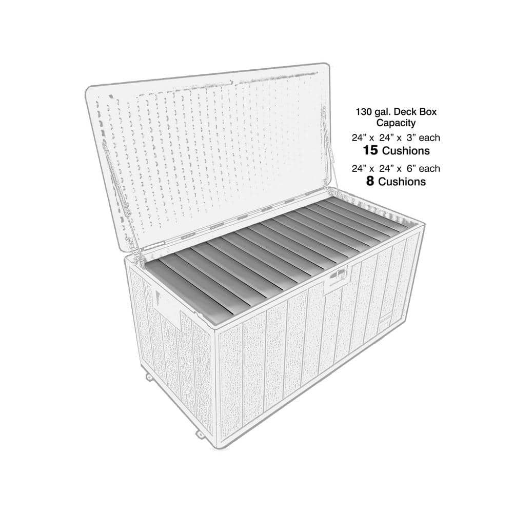 Hampton Bay HBDB130WLJ-GS 130 Gal. Brown Resin Wood Look Outdoor Storage Deck Box with Lockable Lid