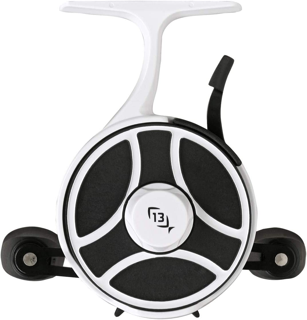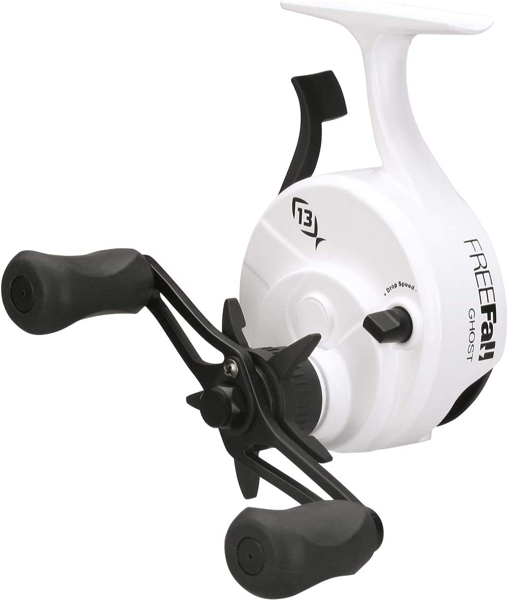 13 Fishing Black Betty FreeFall Ghost Window Inline Ice Fishing Reel, White (Left Hand Retrieve)