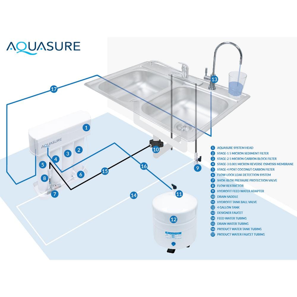 AQUASURE AS-PR75A-BN Premier Series 75 GPD Under Sink Reverse Osmosis Water Filtration System with Brushed Nickel Faucet