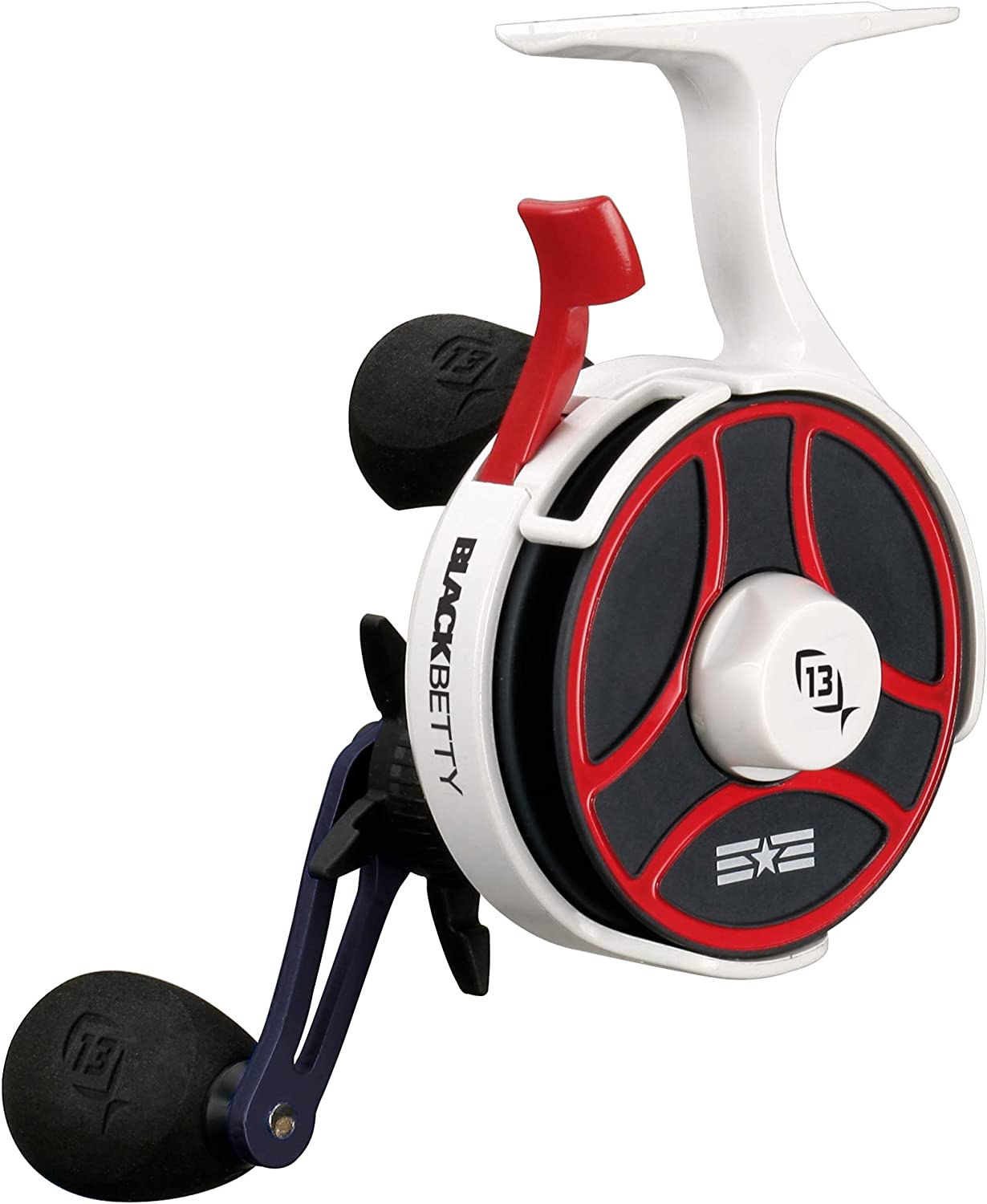 13 Fishing Black Betty FreeFall Ghost Window Inline Ice Fishing Reel, Patriot (Right Hand Retrieve)