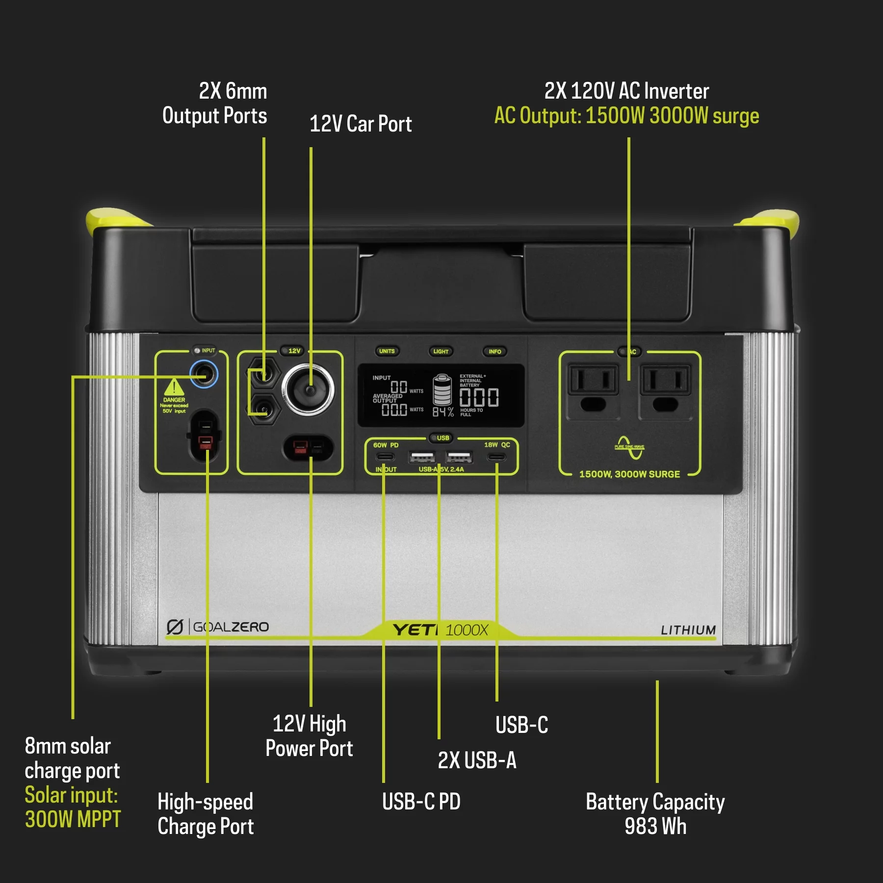 Goal Zero Yeti 1000X Portable Power Station 983Wh Lithium Battery Generator 1500 Watt AC Inverter Emergency Backup