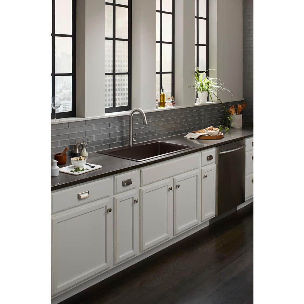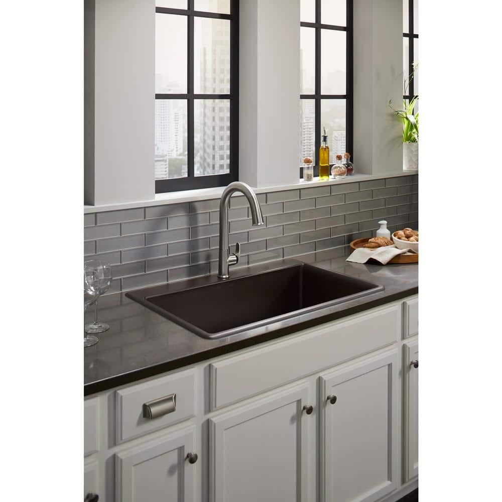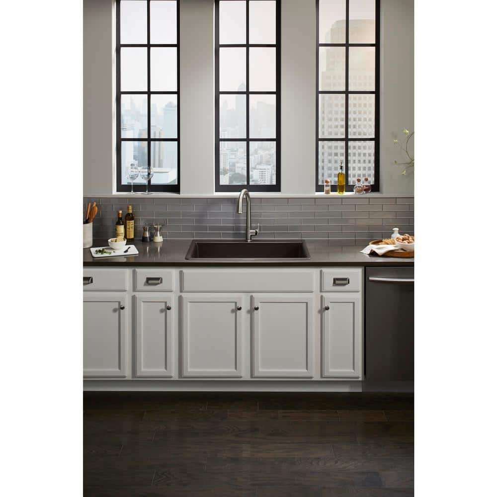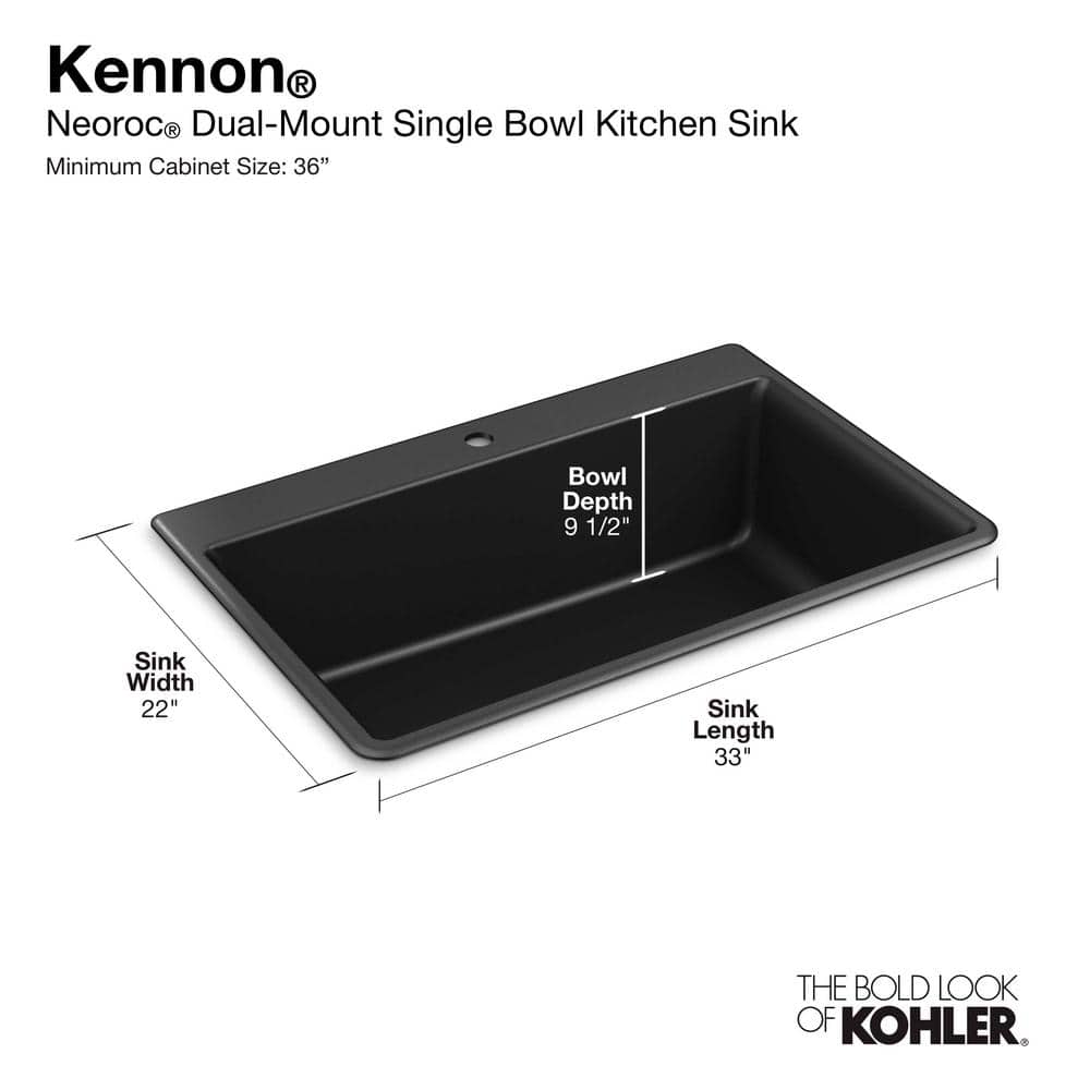 KOHLER K-8437-1-CM1 Kennon Dual Mount Neoroc Granite Composite 33 in. 1-Hole Single Bowl Kitchen Sink in Matte Black with Basin Rack