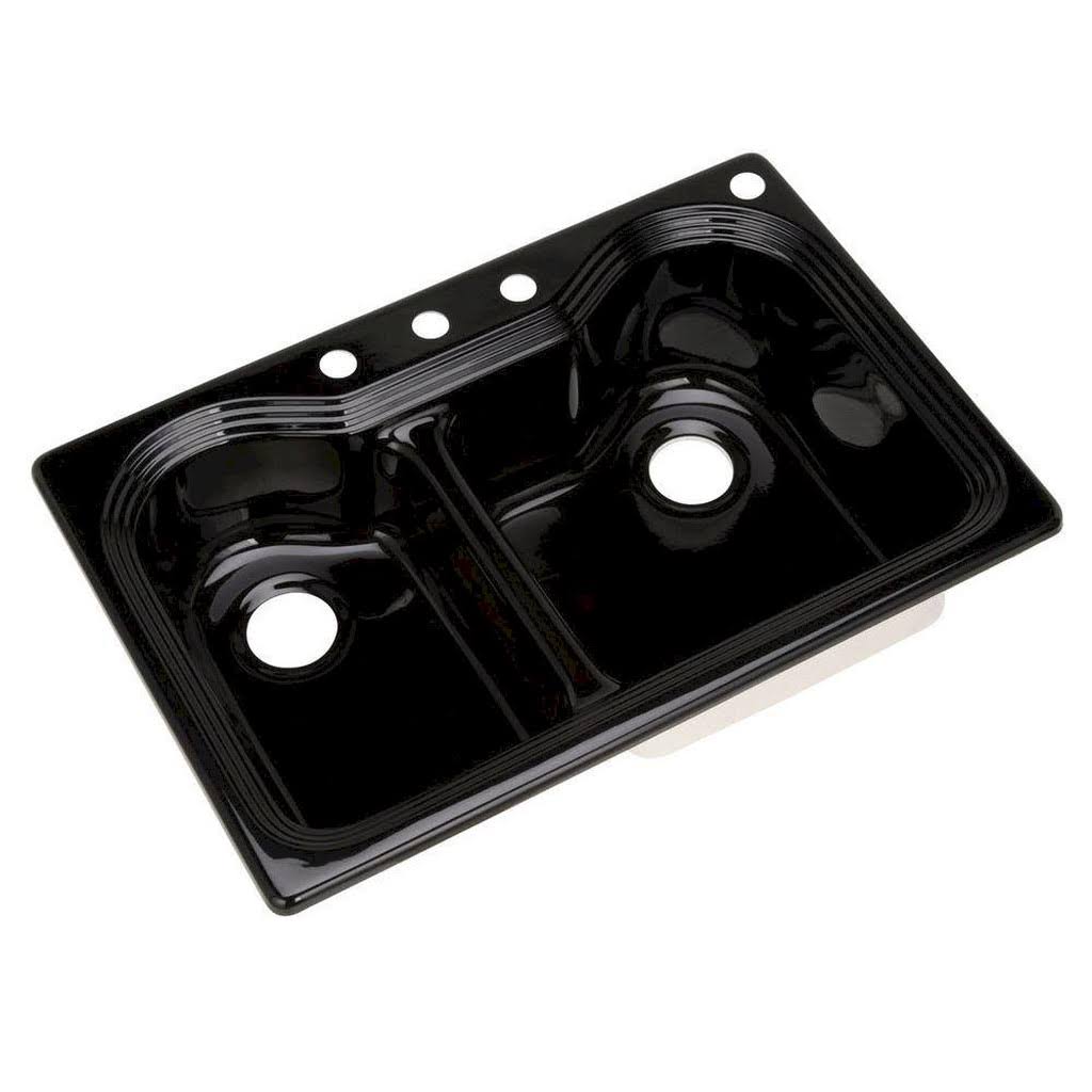 Thermocast Breckenridge Drop-In Acrylic 33 in. 4-Hole Double Bowl Kitchen Sink in Black