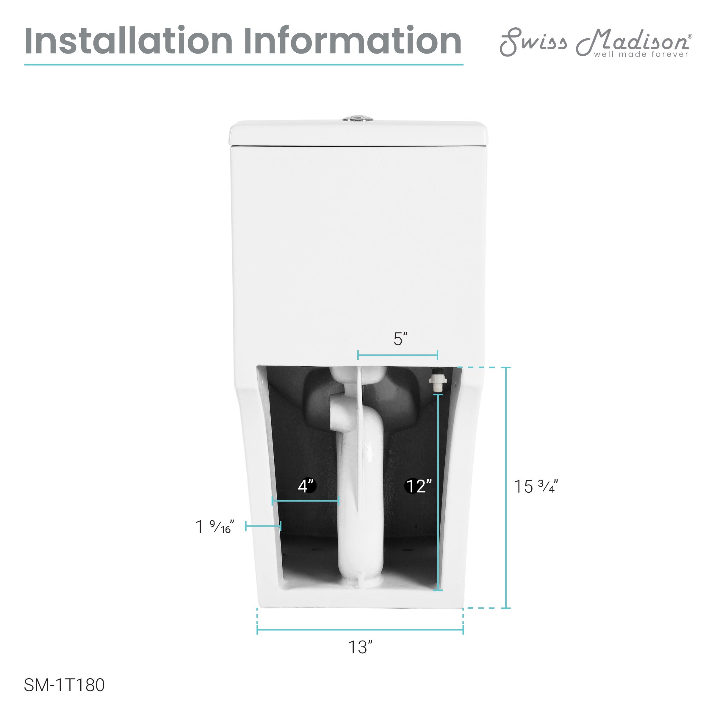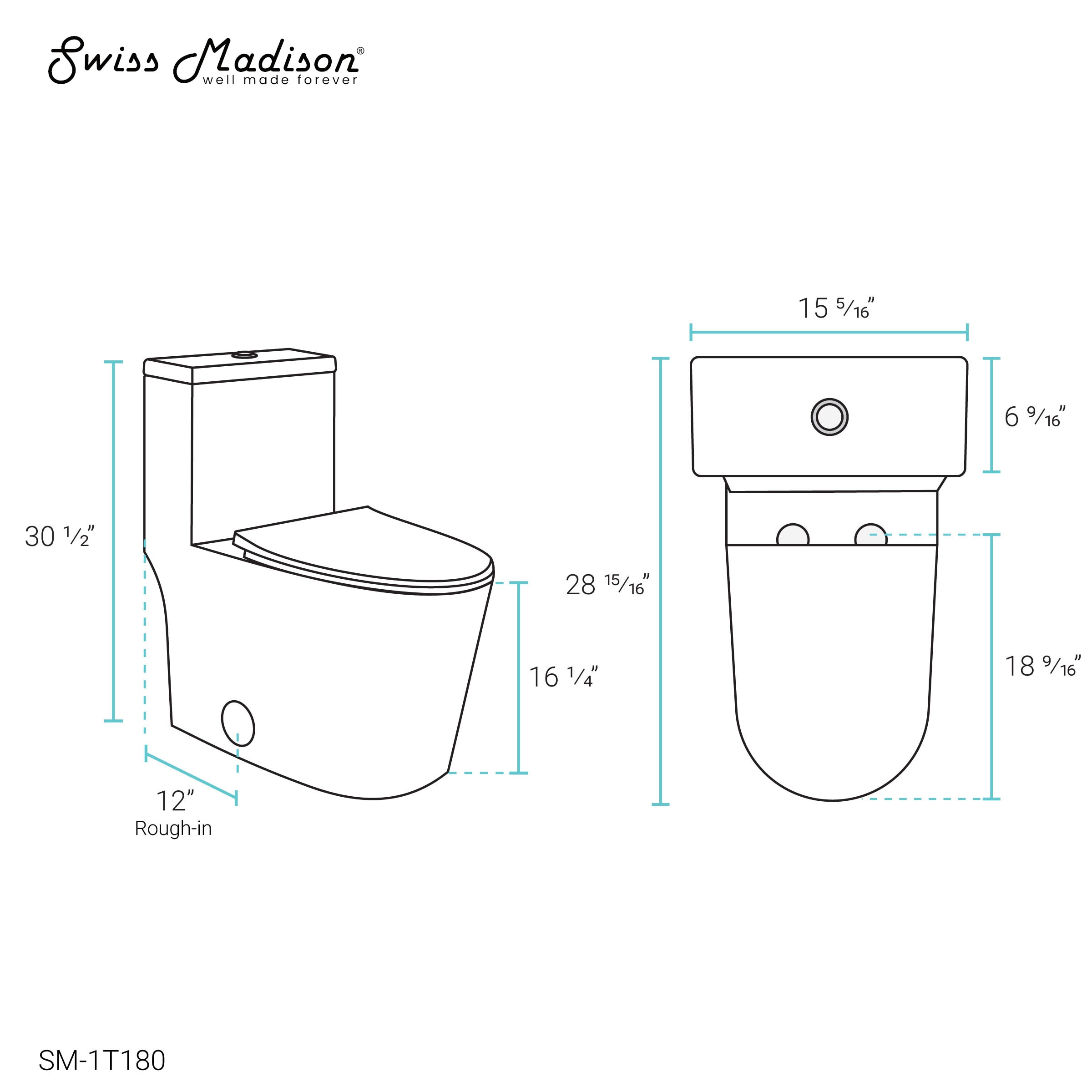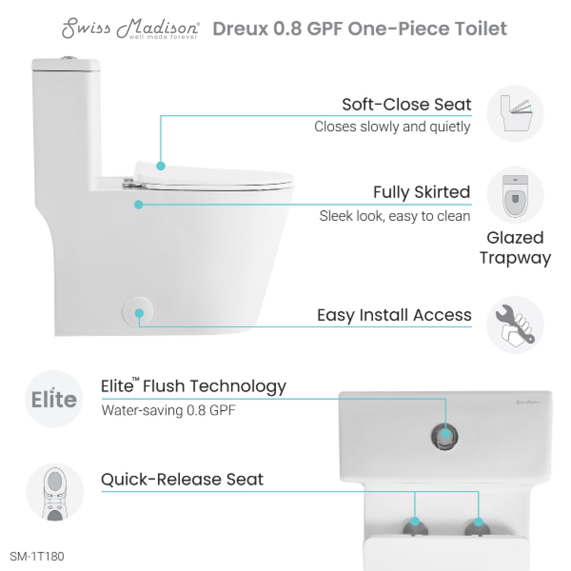 Swiss Madison SM-1T180 Dreux White Elongated Standard Height Toilet 12-in Rough-In Size