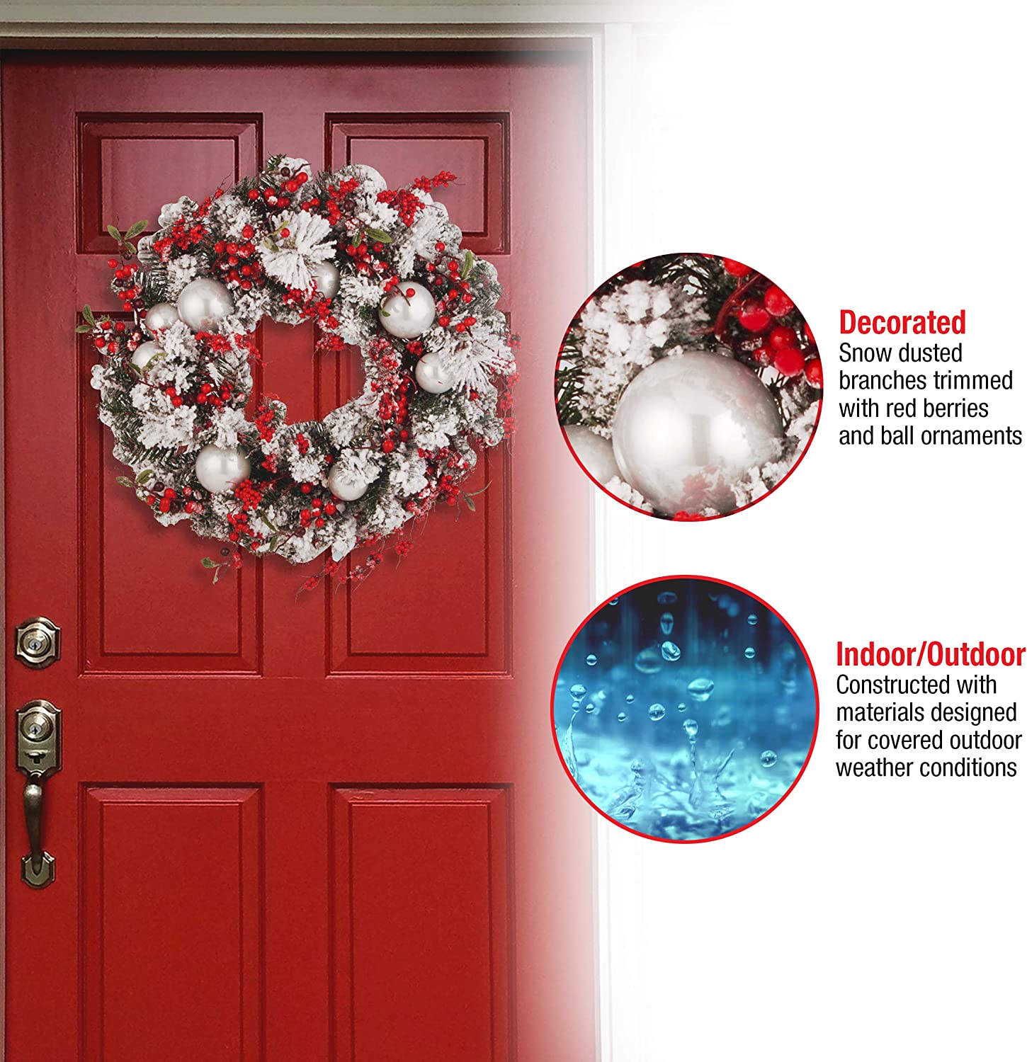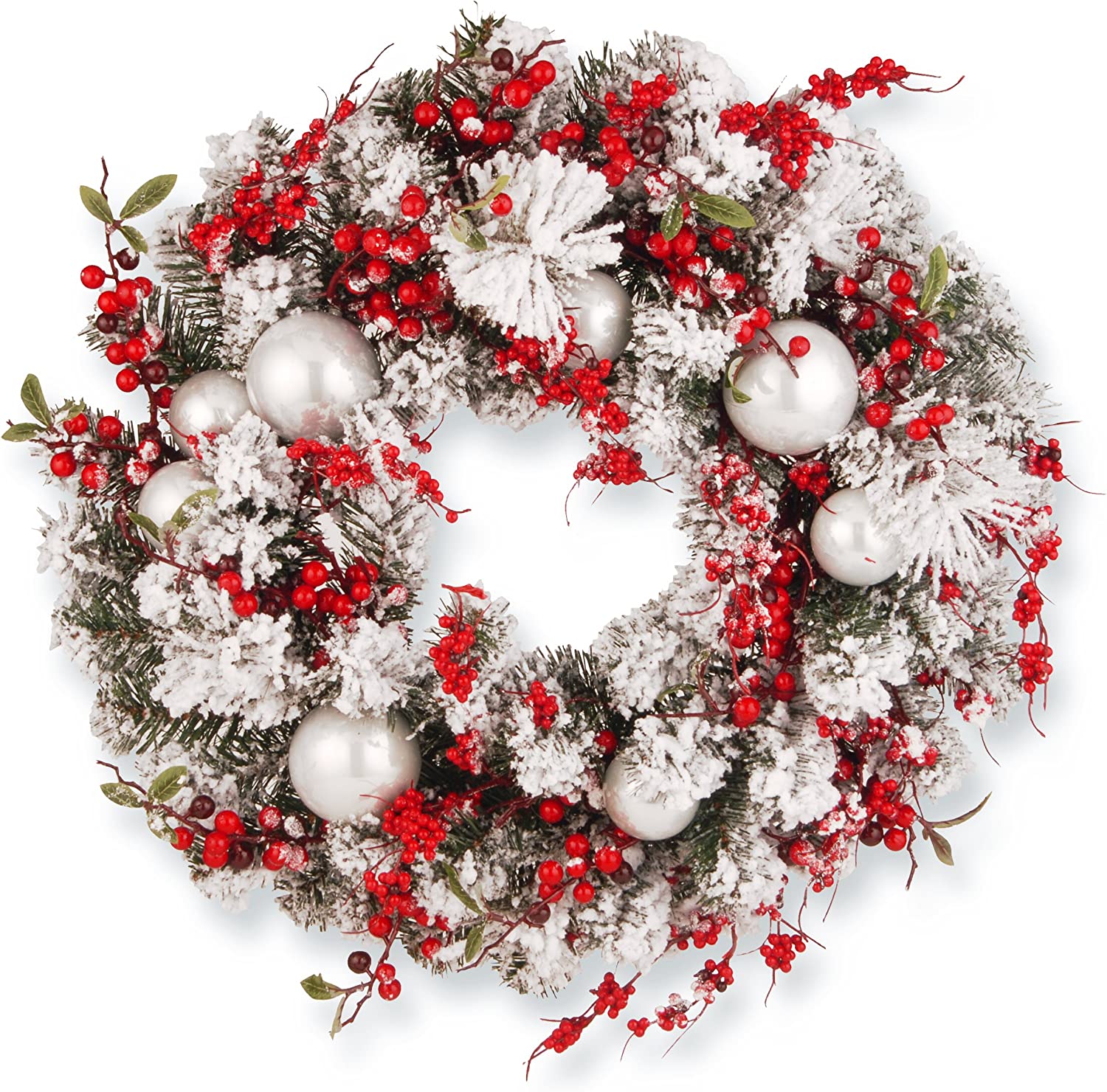 National Tree Company Artificial Christmas Wreath, Green, Evergreen, Decorated with Frosted Branches, Ball Ornaments, Berry Clusters, Christmas Collection, 24 Inches