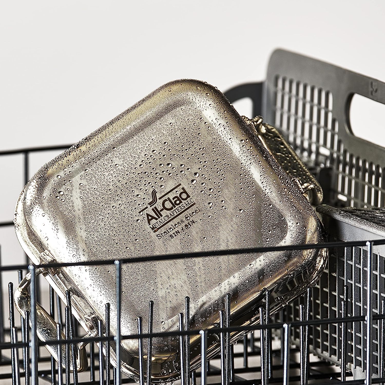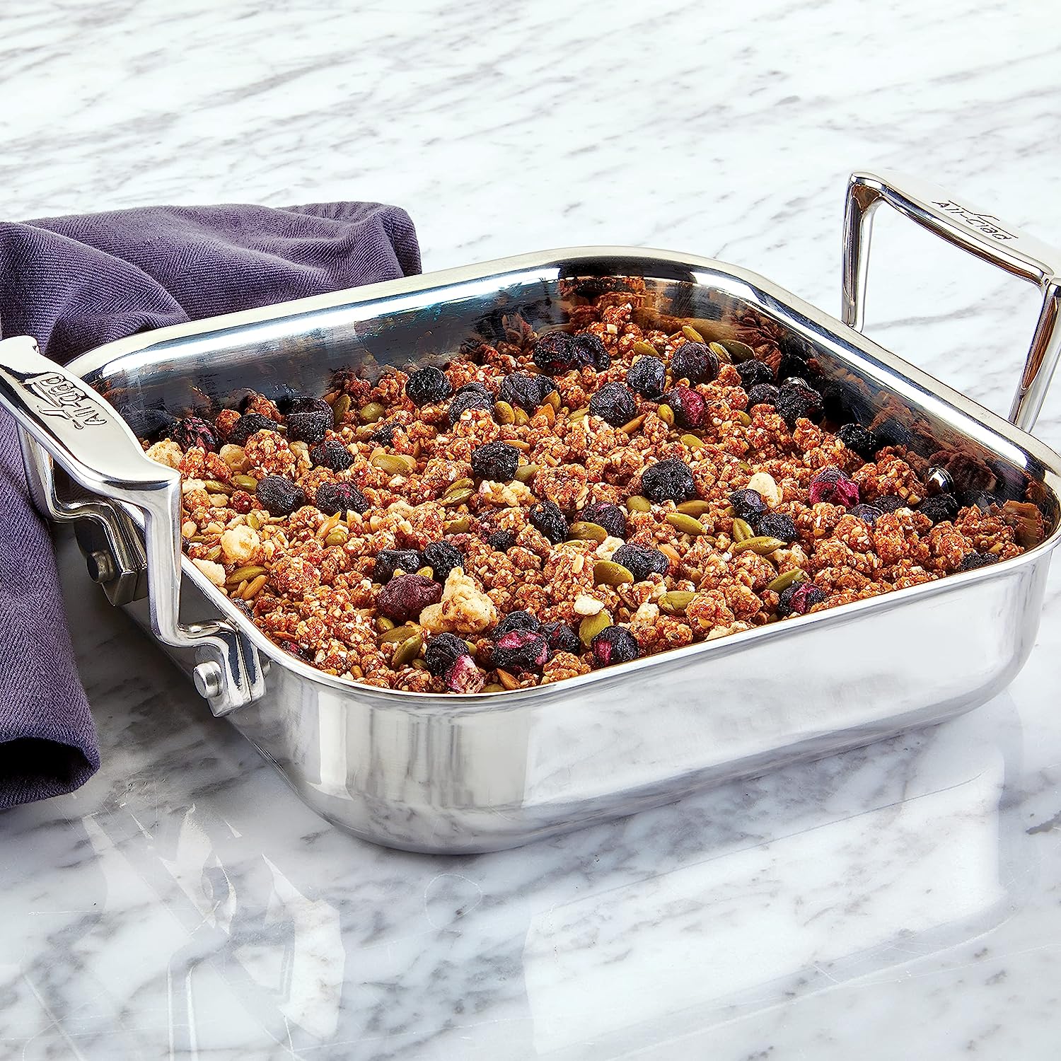All-Clad Specialty Cookware Stainless Steel and Plastic Square Covered Baking Pan 8 x 8 Inch Rounded Edges, Upright Handles, BPA Free Plastic Lid, Oven Broil Safe 600F Pots and Pans