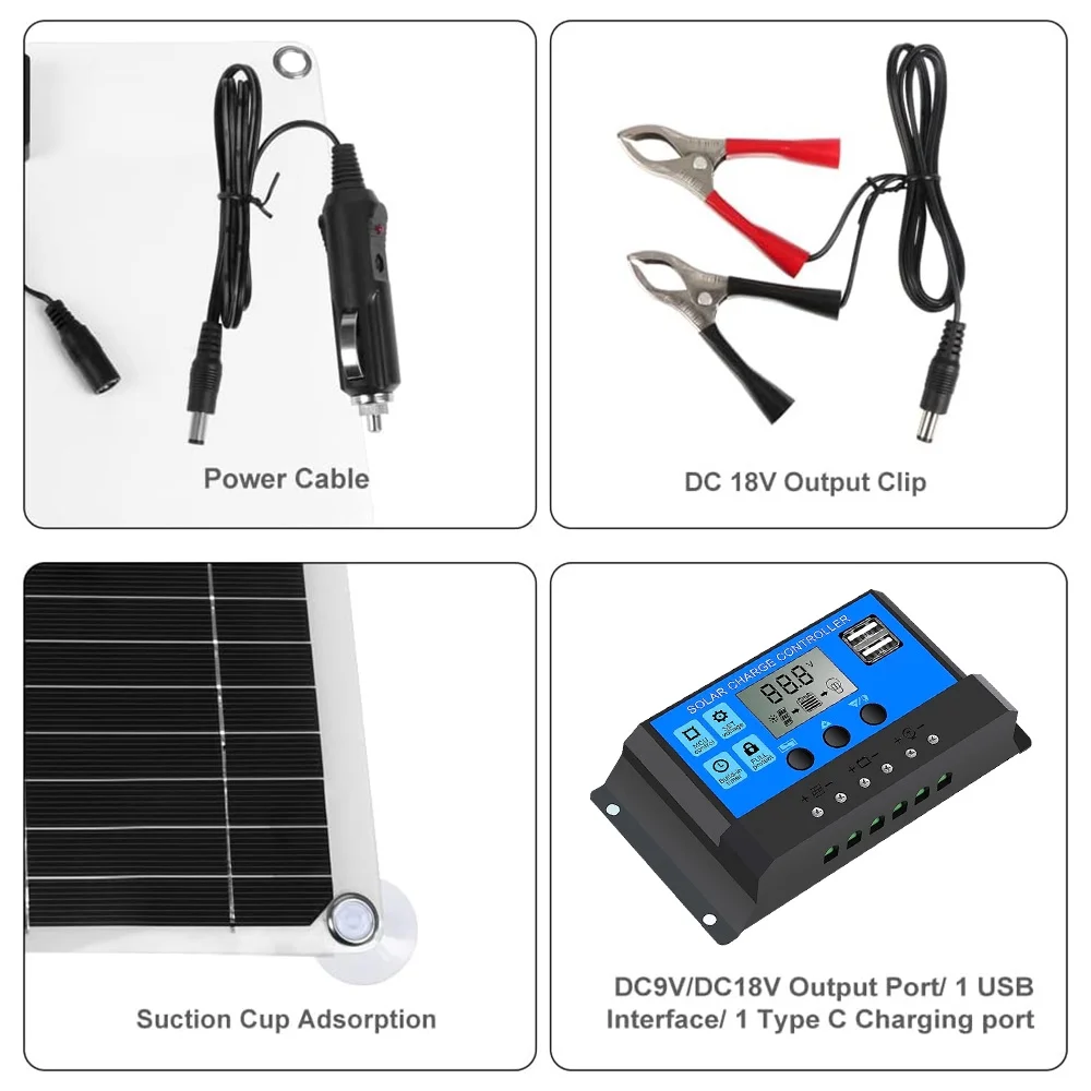 KKMOL 200W Solar Panel Kit. 12V Monocrystalline Solar Panel Portable Power Station with Controller. for Outdoor Camping. RV. Off Grid