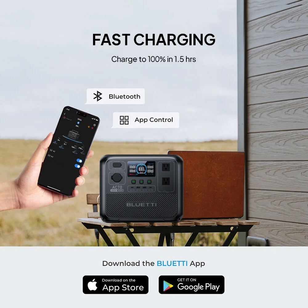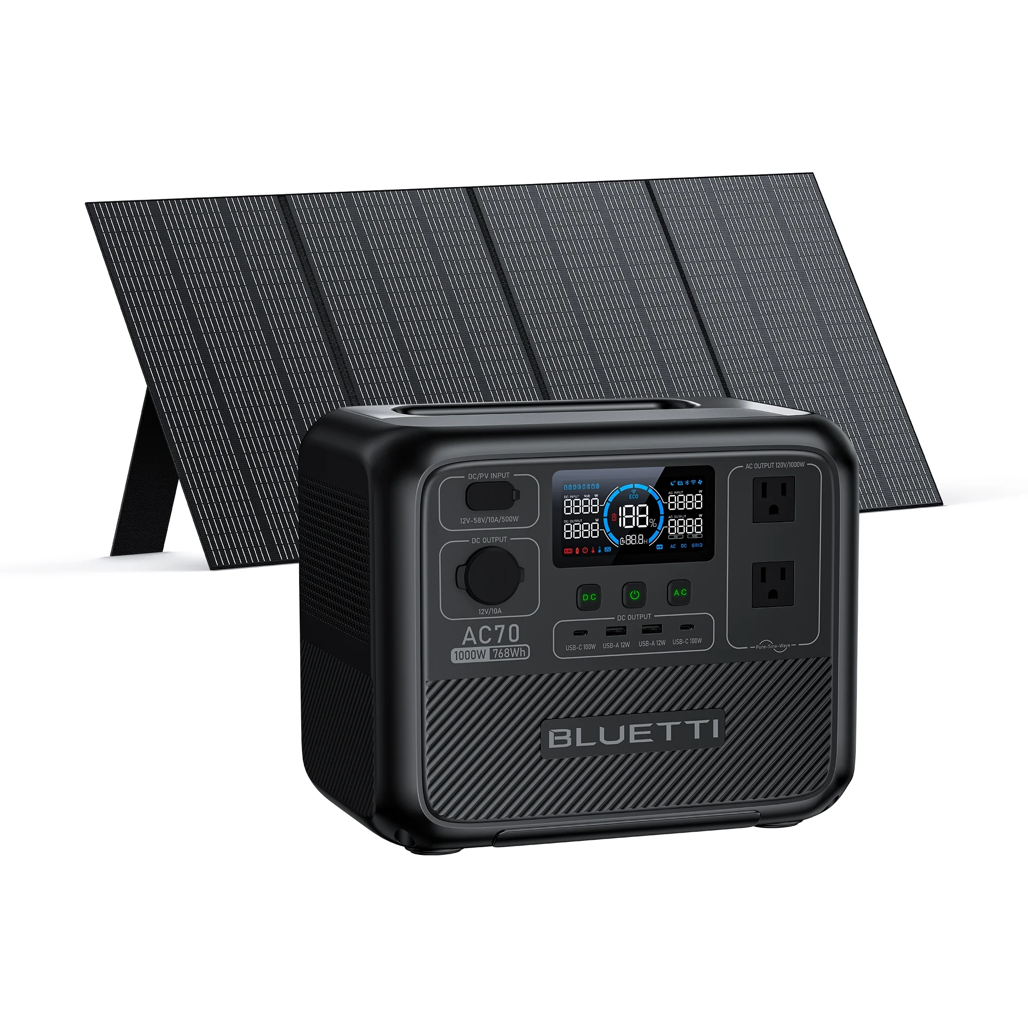 BLUETTI AC70 Portable Solar Generator and PV350 Solar Panel. 768Wh LiFePO4 Power Station. 80% Charge in 45 Mins. 1000W Rated Power (2000W Lifting Power) for Camping. Hiking. Home Backup