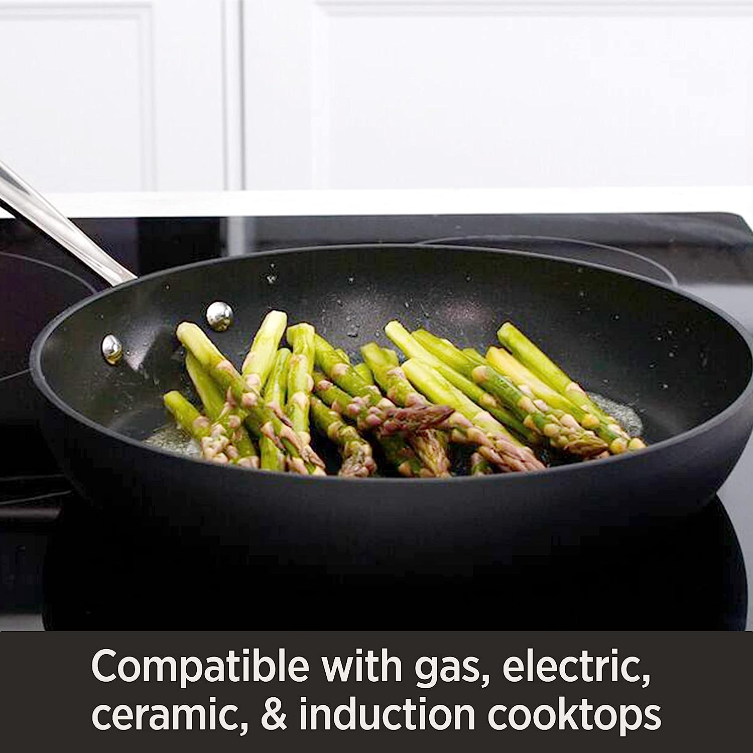 All-Clad HA1 Hard Anodized Nonstick 5 Piece Fry Pan Set 8, 10, 12 Inch Induction Pots and Pans, Cookware Black