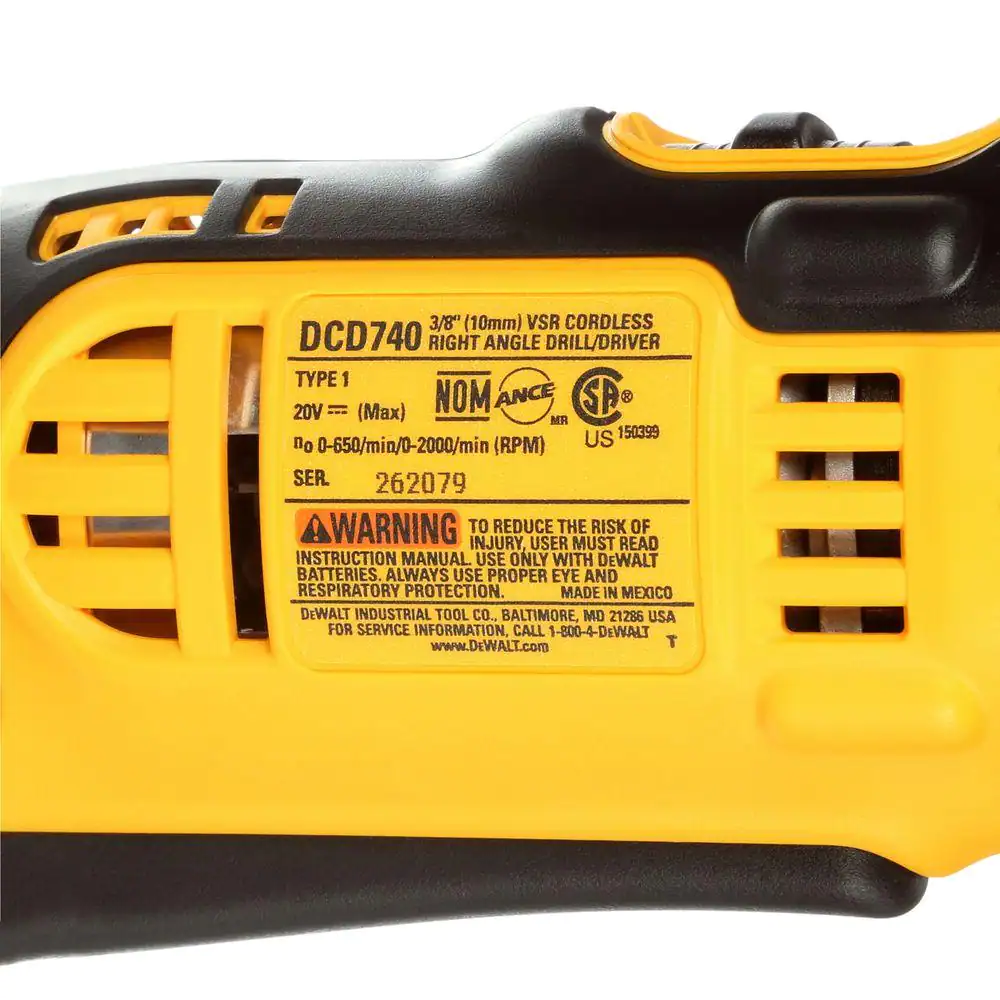 DEWALT DCD740B 20-Volt MAX Cordless 3/8 in. Right Angle Drill/Driver (Tool-Only)