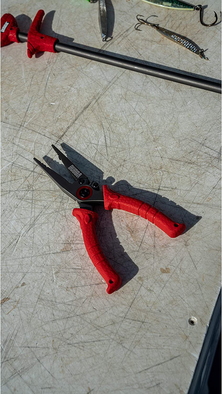 BUBBA 8.5′′ Stainless Steel Pliers with Non-Slip Handle, Spring Loaded with Crimping Tools and Anvil Cutters Lanyard Hole and Sheath
