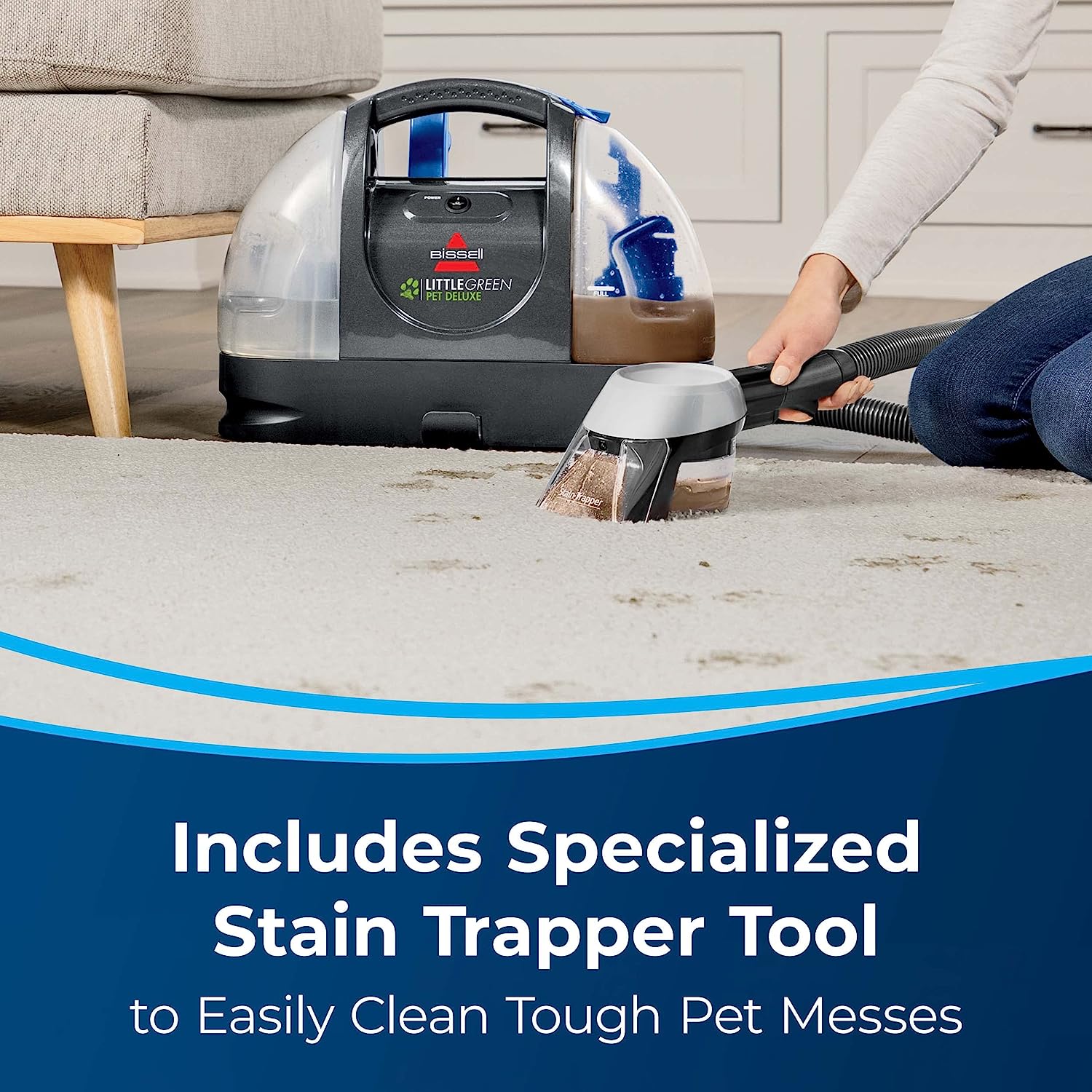 Bissell Little Green Pet Deluxe Portable Carpet Cleaner, 3353, Large, Gray/Blue