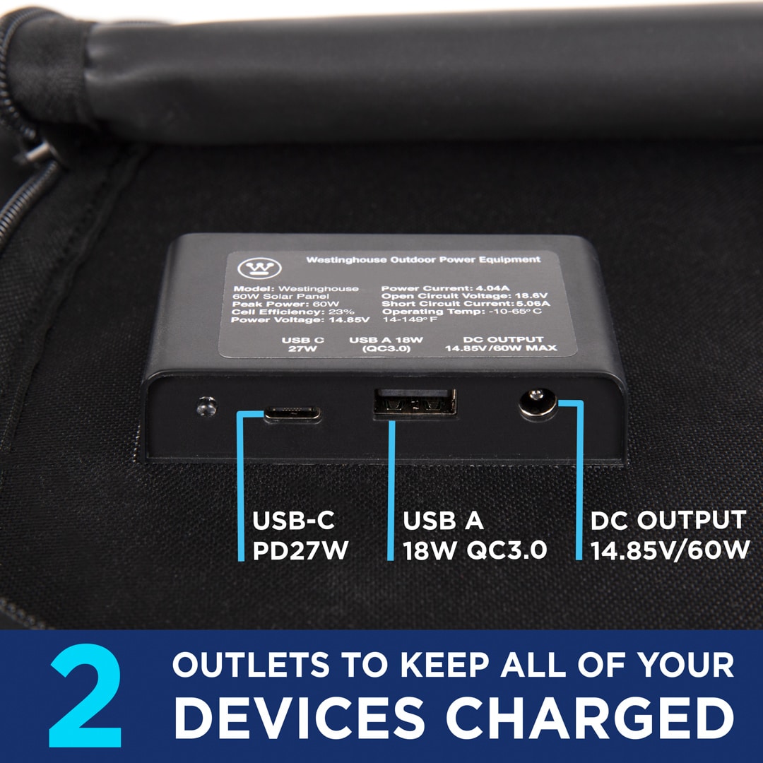 Westinghouse WS60P Lightweight Phone Power Station Charger RV/Camping 41.5-in x 18-in x 1-in 60-Watt Portable Solar Panel
