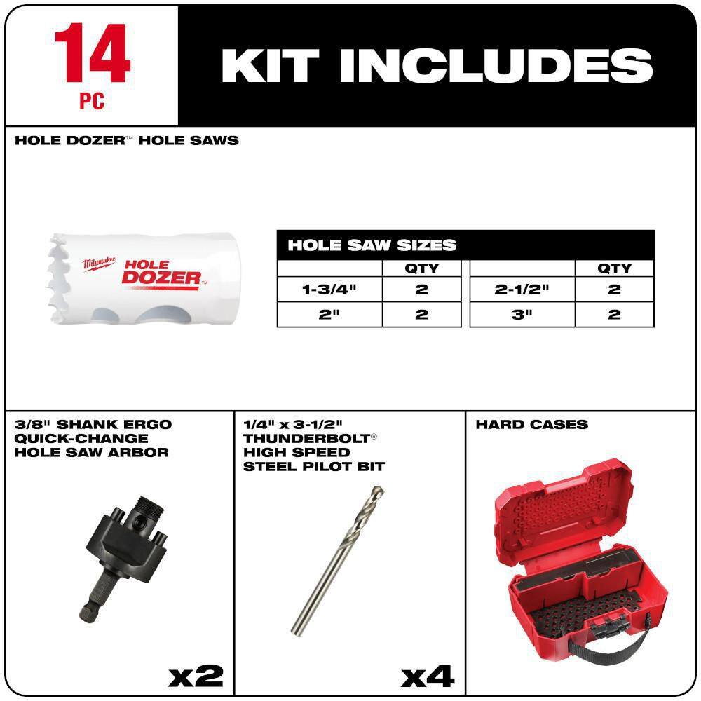 Milwaukee 49-22-4038-49-22-4038 Hole Dozer Bi-Metal Hole Saw Kit (14-Piece)