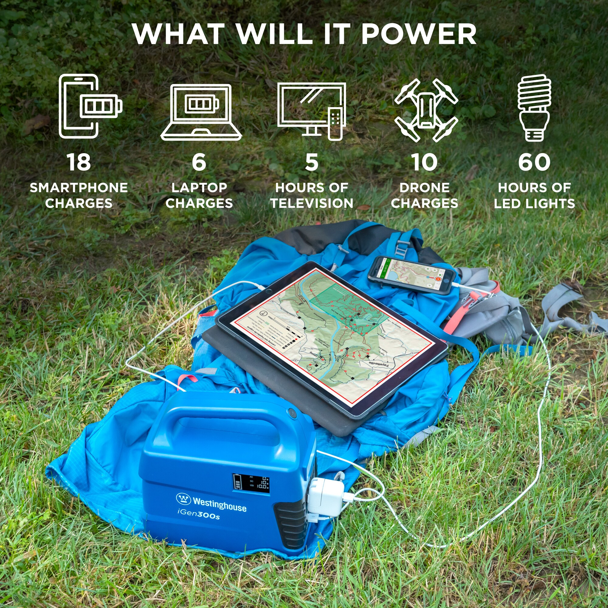 Westinghouse IGEN300S 300-Rated/600-Peak Watt Camping/RV Power Station 296-Watt Hour Portable Solar Generator