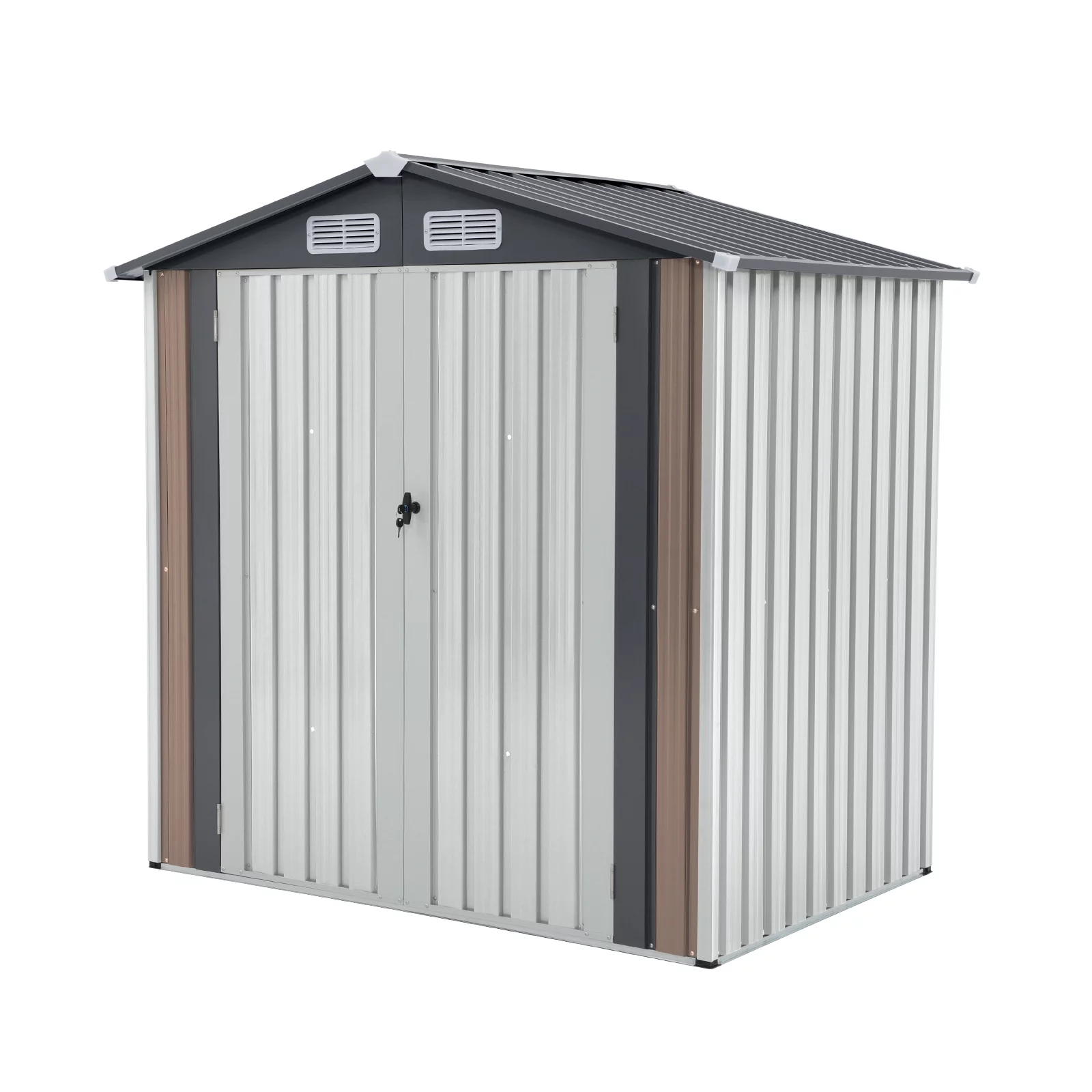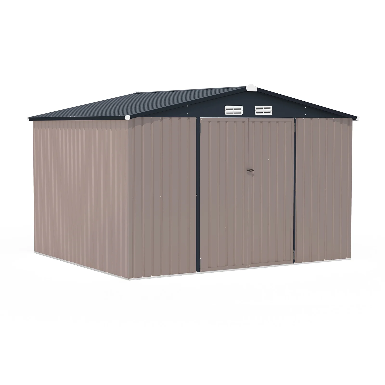 OC Orange-Casual 10' x 8' FT Outdoor Storage Shed. Metal Garden Tool Shed with Lockable Door. Outside Sheds & Storage Galvanized Steel. Brown