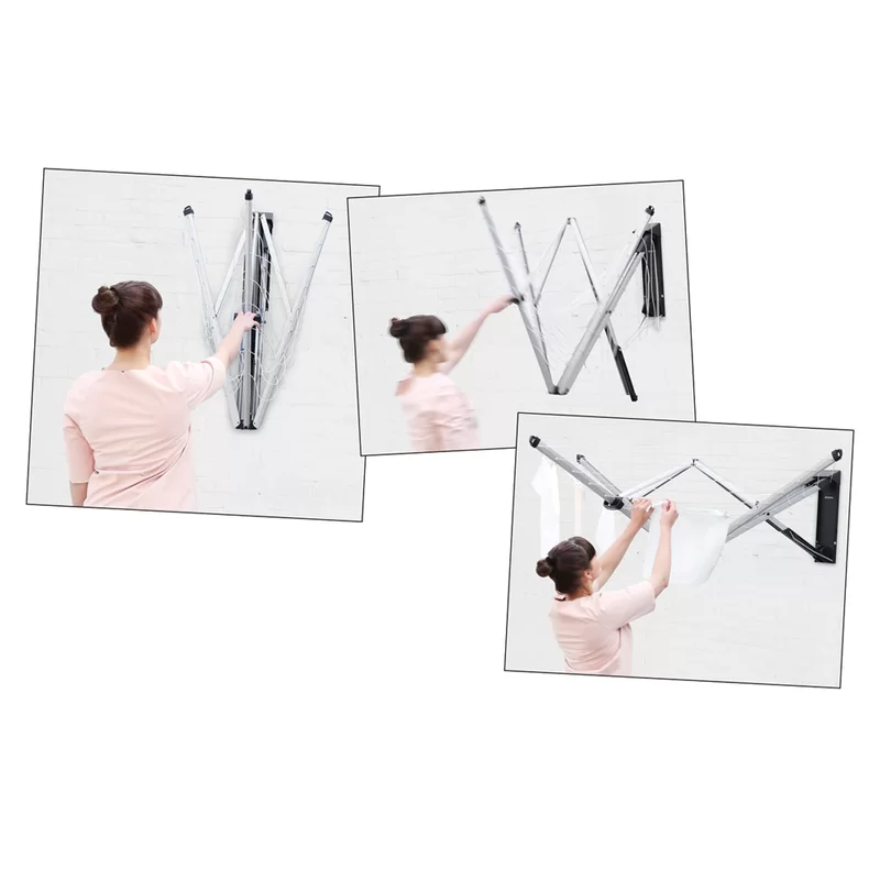 Brabantia 475924 72.5 x 72.5 Inch Steel Retractable Indoor or Outdoor Clothesline Wall Mounted with Protective Storage Box