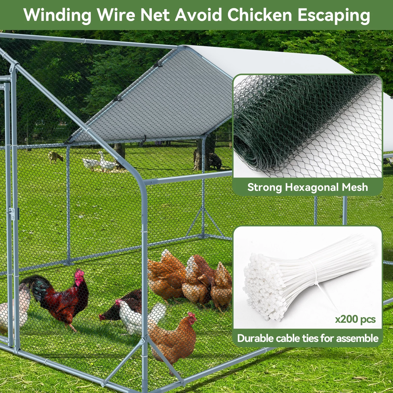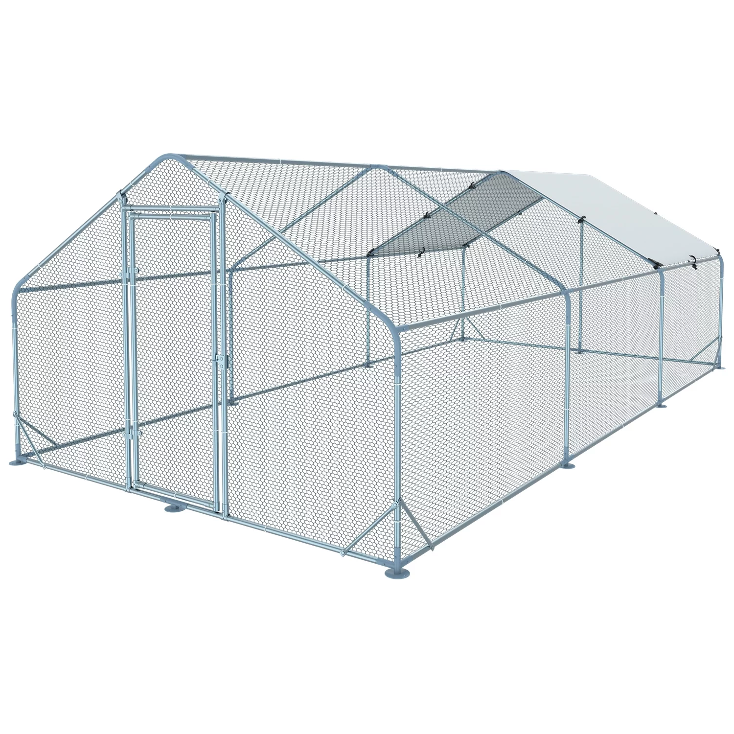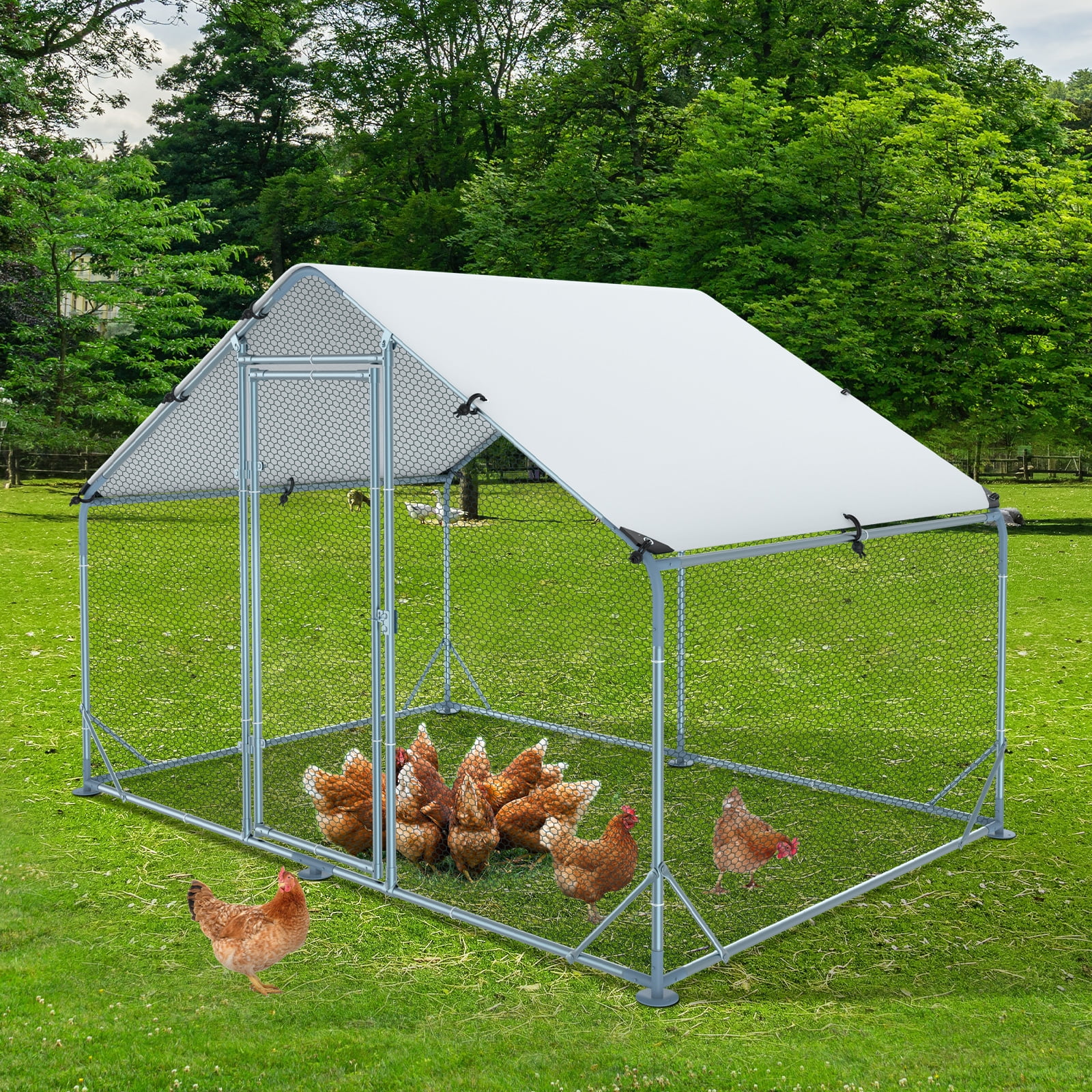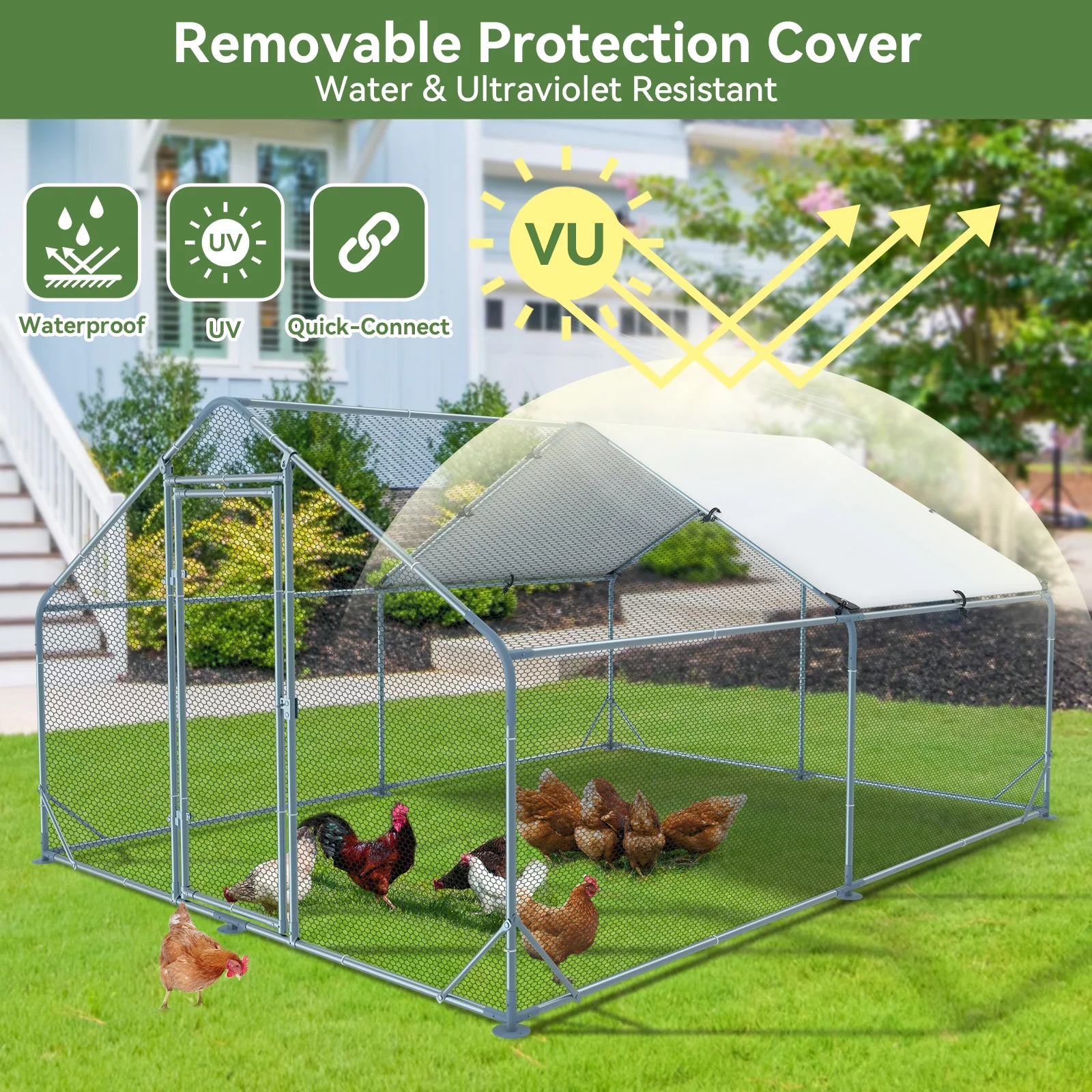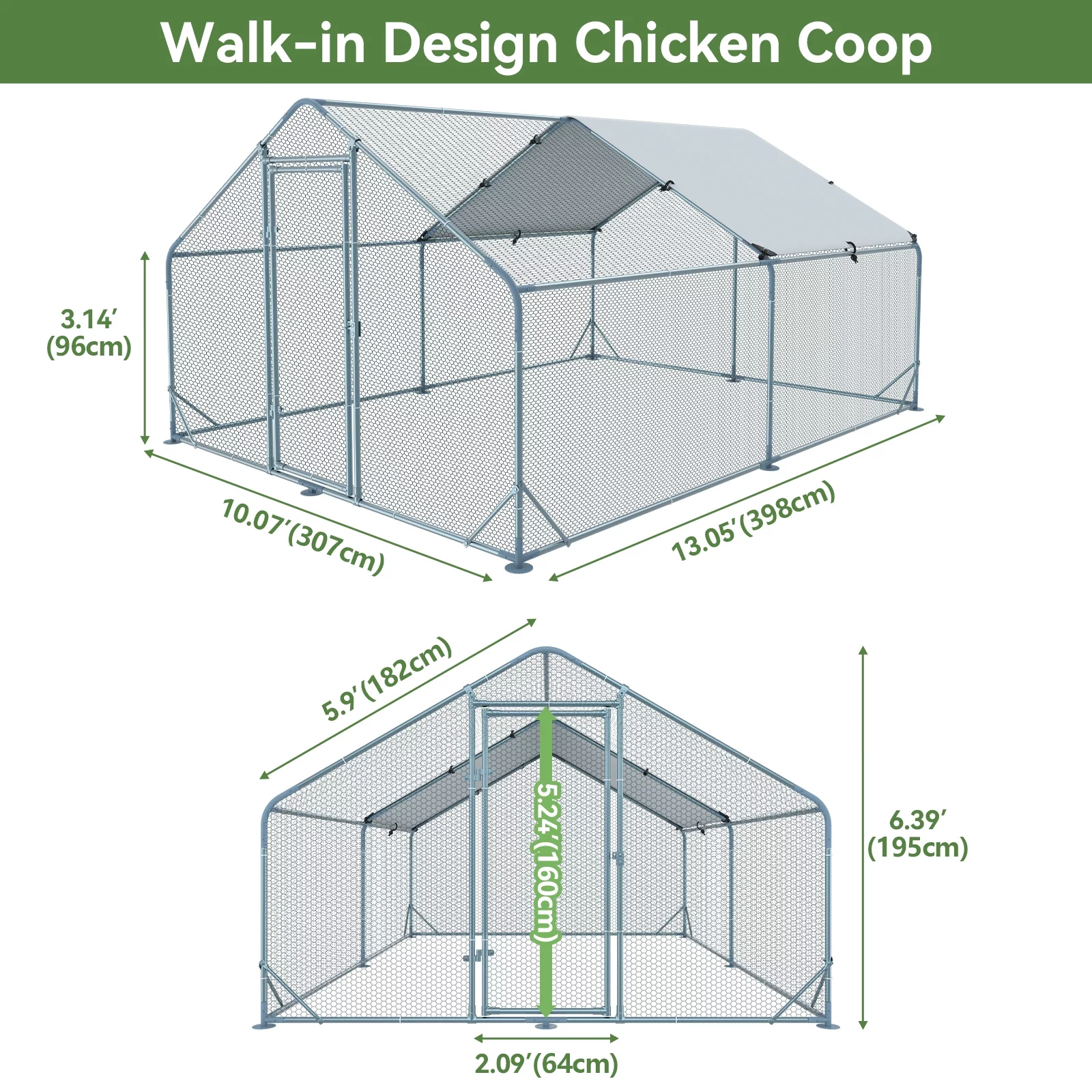 Kfvigoho Large Metal Chicken Coops. 13x10x6.4 ft Outdoor Walk-in Poultry Cage with Spire Shaped Roof. Waterproof and UV Resistant Cover for Backyard Farm 131.41 Square Feet