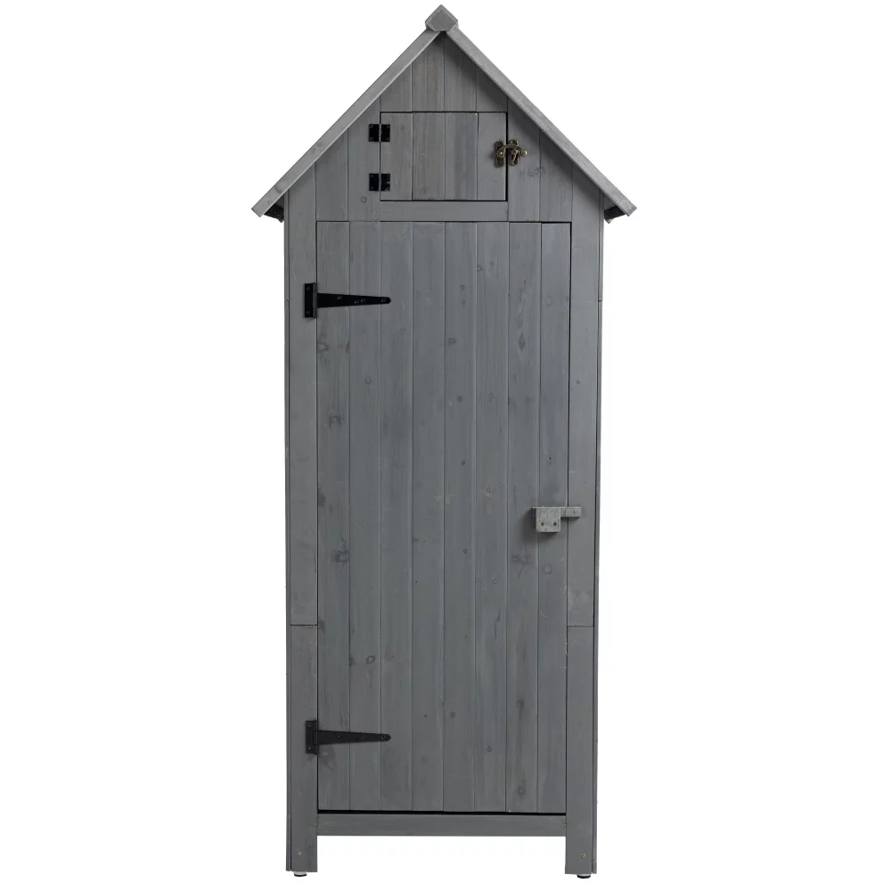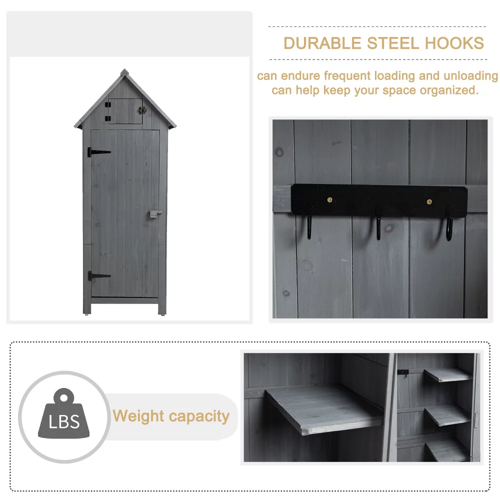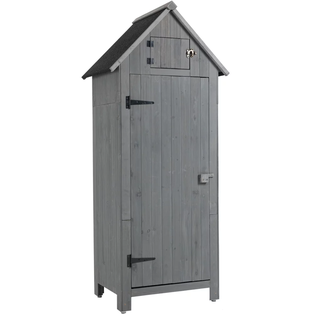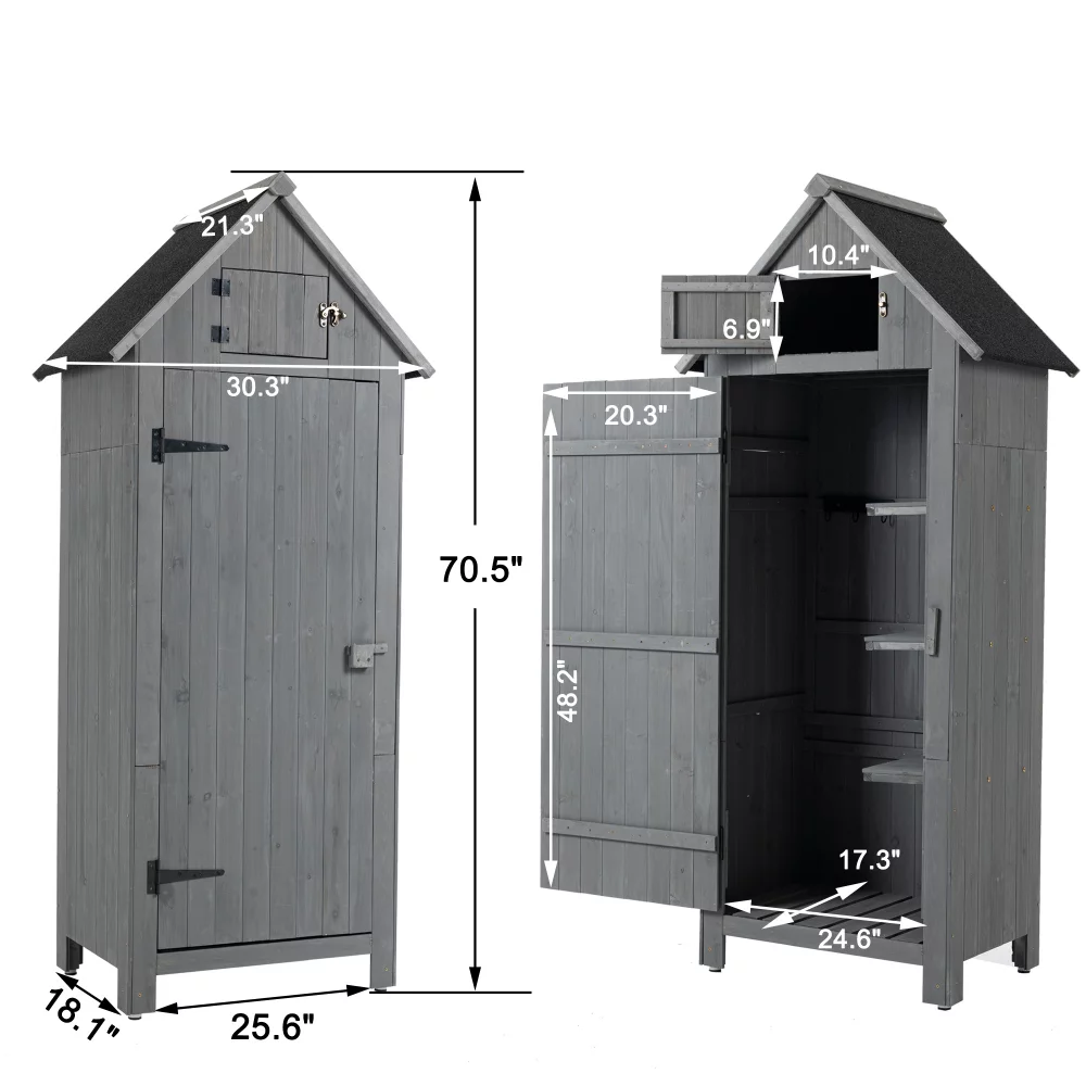 Outdoor Storage Cabinet. Wooden Garden Utility Tool Storage Shed. Wooden Storage Box with Lockable Doors for Garden Lawn Backyard 30.3L X 21.3W X 70.5H-Grey