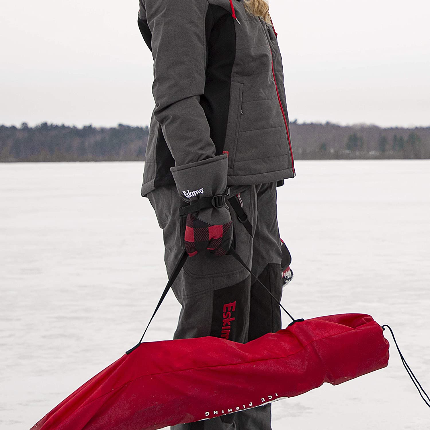 Eskimo 34840 Plaid XL Tripod Ice Fishing Stool, Buffalo Plaid Red/Black, XL Tripod Stool (Plaid XL Tripod Stool)