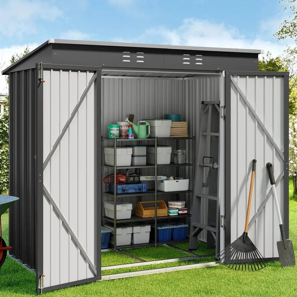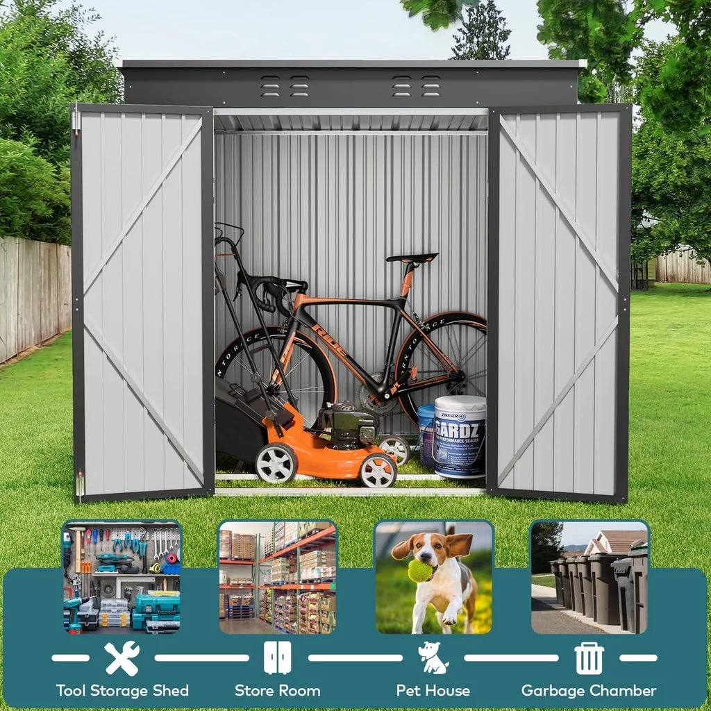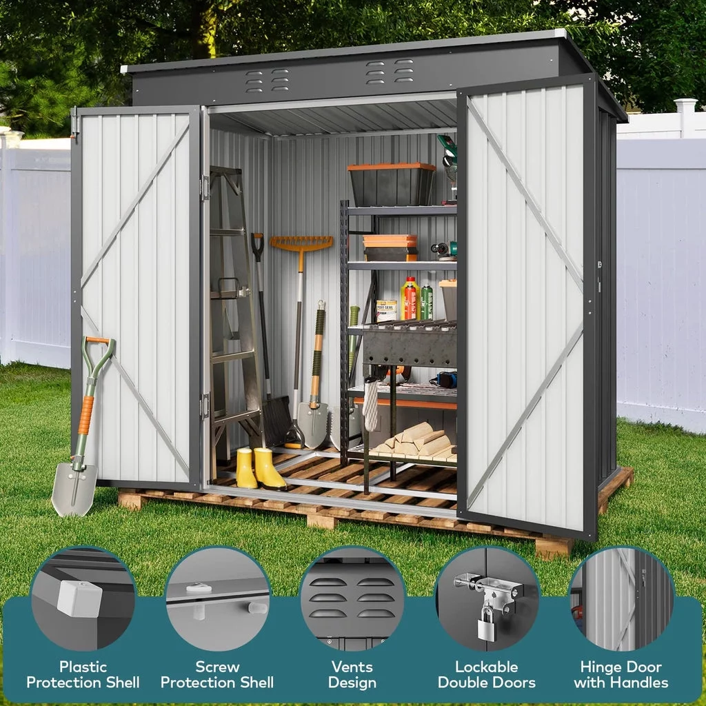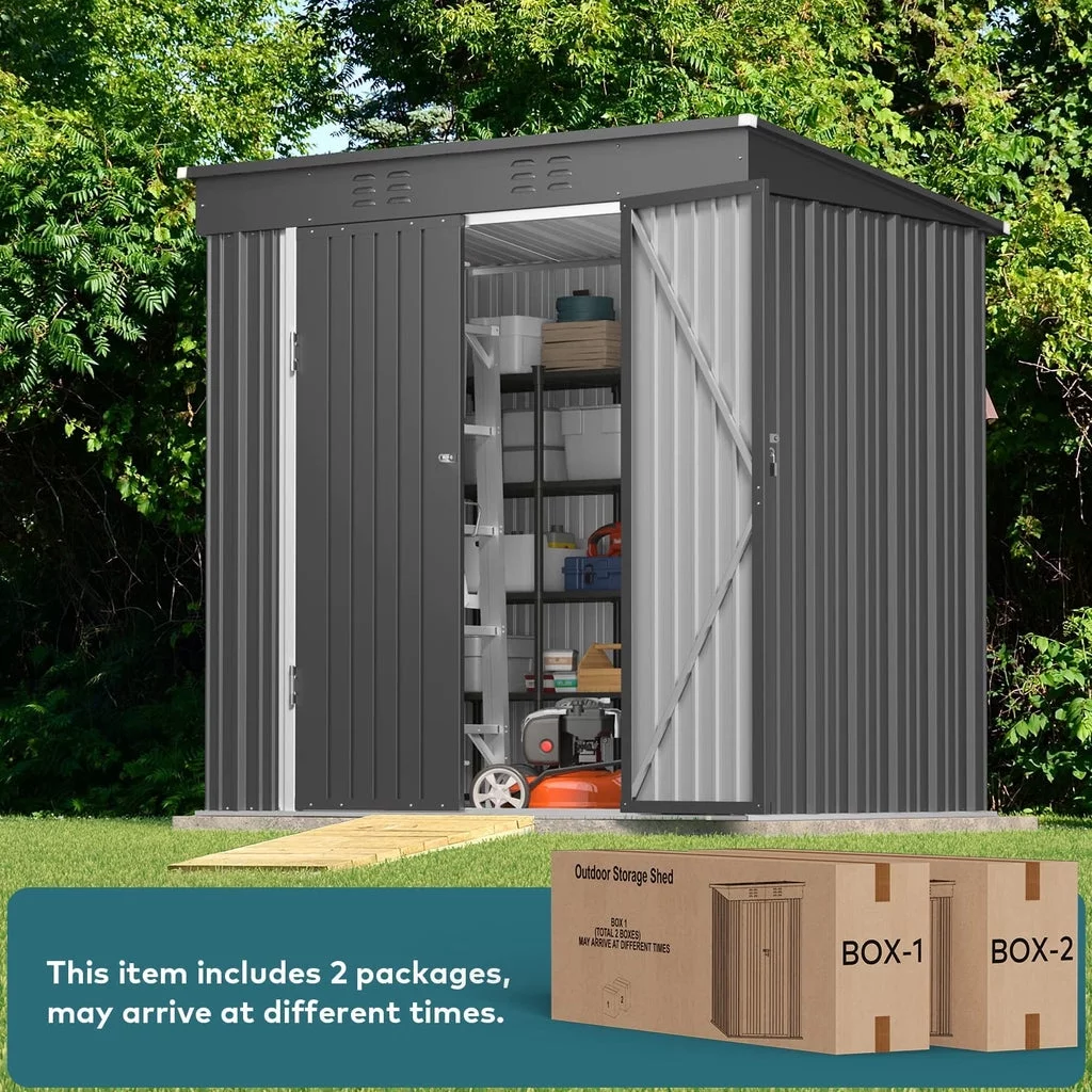 Aiho 6'x 4' Outdoor Storage Shed with Lockable Door for Garden Backyard Patio - Gray