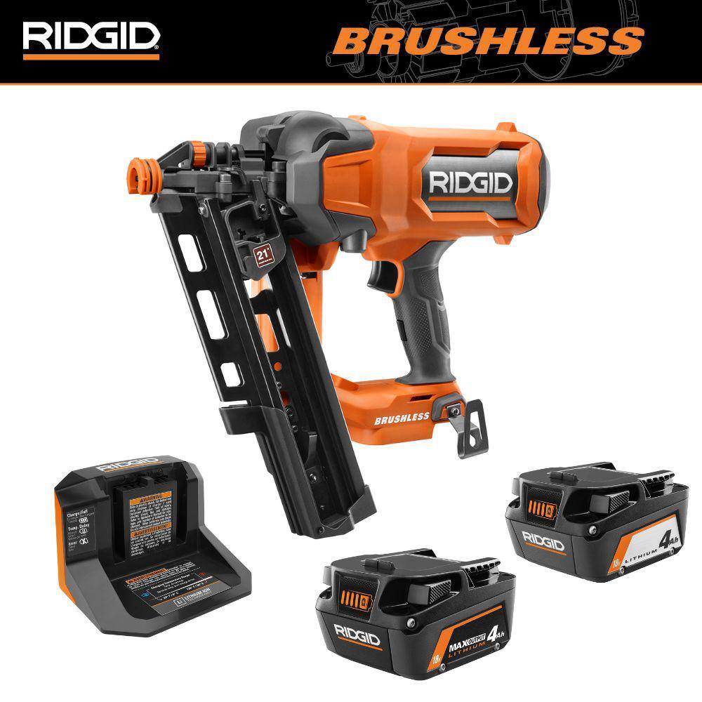 RIDGID R09894KN-AC840040 18V Brushless Cordless 21° 3-1/2 in. Framing Nailer Kit with 4.0 Ah Battery, Charger, and 4.0 Ah MAX Output Battery