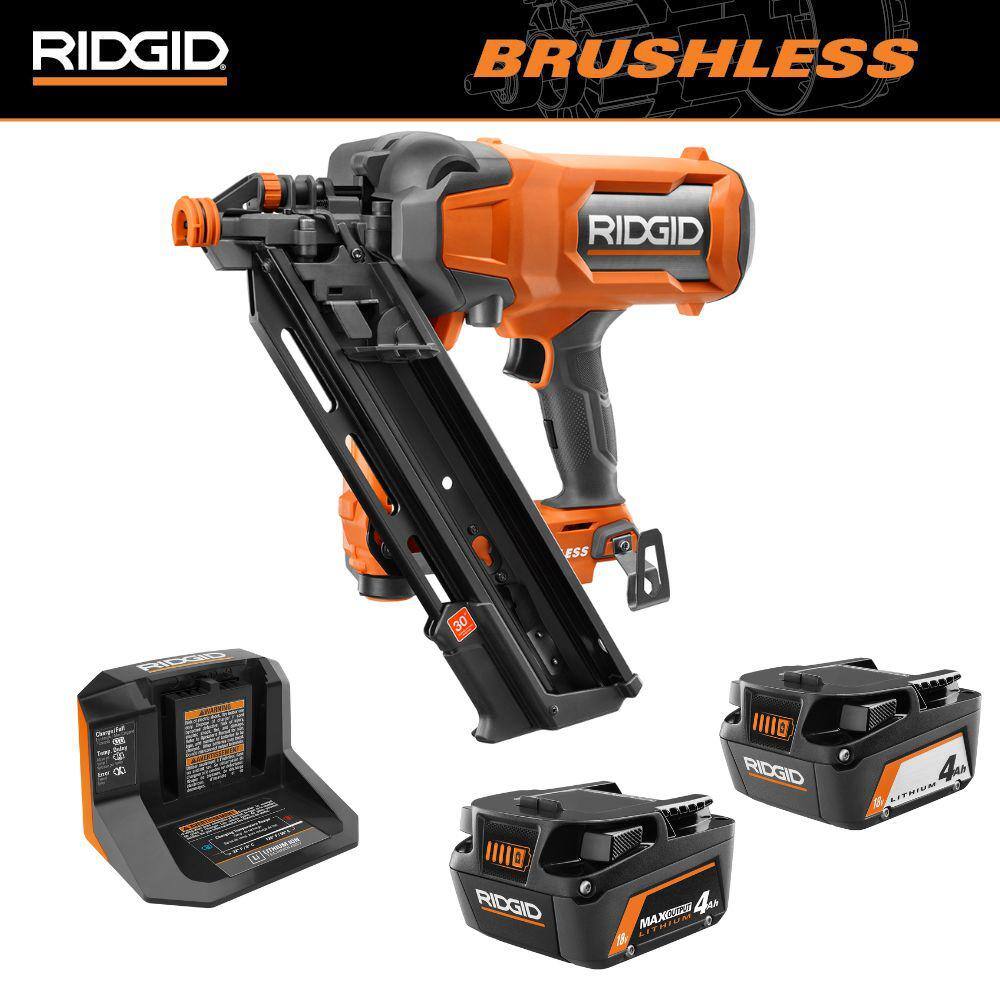 RIDGID R09895KN-AC840040 18V Brushless Cordless 30° Framing Nailer Kit with 4.0 Ah Battery and Charger with 18V 4.0 Ah MAX Output Battery