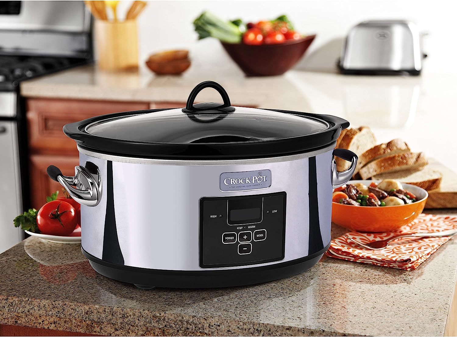 Crock-Pot 7 Quart Programmable Slow Cooker with Digital Timer, Food Warmer, Polished Platinum