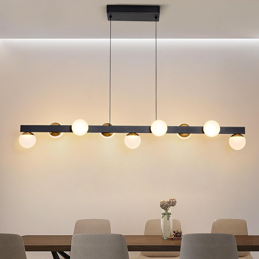 9 Lights Modern Globe Chandelier, LED Dimmable Black and Gold Pendant Lighting Dining Room Light Fixtures, Mid Century Linear Chandeliers for Dining Room Kitchen Bedroom Living Room