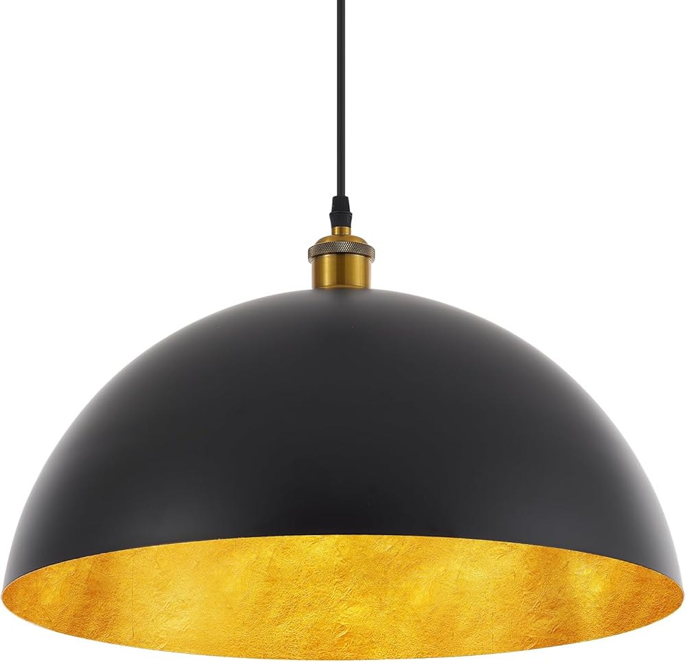 18” Large Industrial Pendant Light with Gold Leaf Shade Adjustable Dome Pendant Lighting Fixtures Modern Chandelier for Dining Room Kitchen Island Living Room, Matte Black, UL Listed