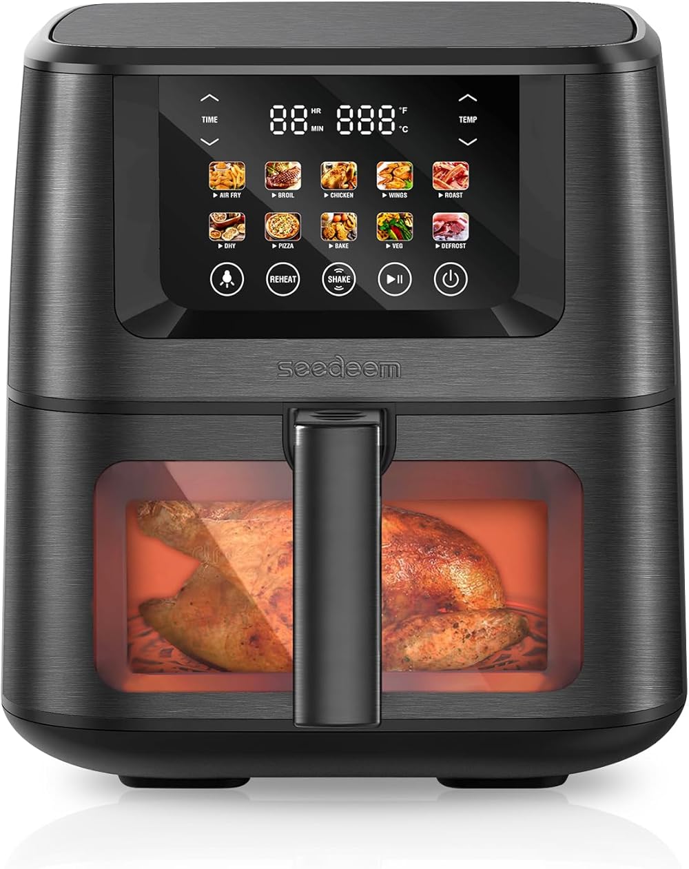 SEEDEEM Max XL Air Fryer, 8 Quart, 10-in-1 Hot Air Fryer Oven with Color LCD Display Touchscreen, Air Fryer Toaster Oven Combo with ClearCook Cooking Window,Broil, Roast, Dehydrate, Bake, Black