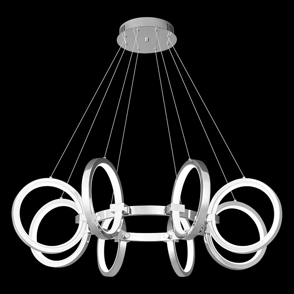 Modern LED Chandelier Dimmable Round Pendant Light Fixtures 8 Ring Chrome Chandeliers Adjustable Hanging Pendant Lighting for Kitchen Island Living Room Dining Room Bedroom…