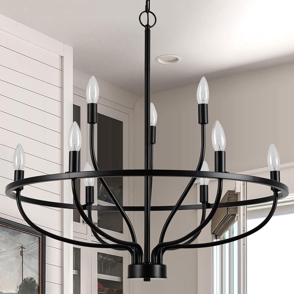 Black Chandelier 9-Light Industrial Iron Candle Chandelier Modern Suspended Farmhouse Chandeliers Pendant Light Fixtures for Dining Room Bedroom Living Room Kitchen Island Foyer E12 Bulb
