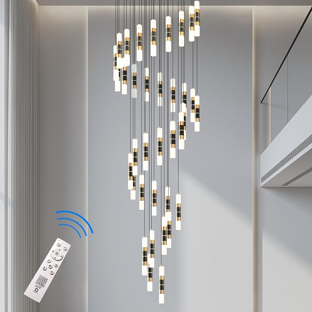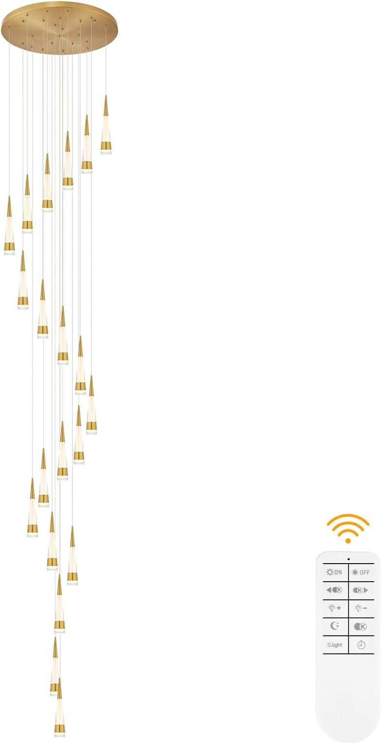 Modern Gold 20 Lights Cone Chandelier, High Ceiling LED Dimmable Lighting Fixture for Staircase, Living Room, Entryway, 138''