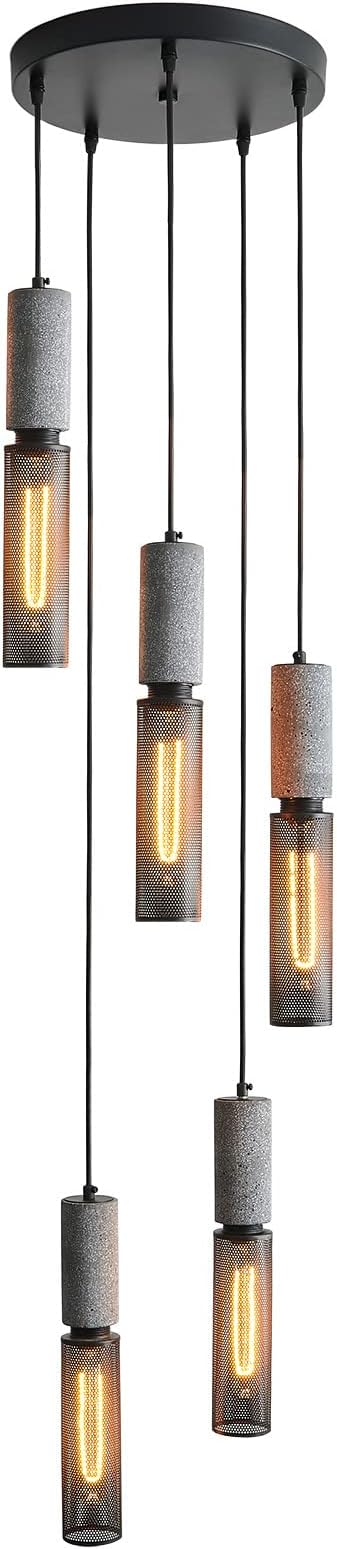 5-Light Concrete Linear Pendant Light with a Metal Mesh Shade,Modern Industrial Hanging Cement Pendant Lighting for Kitchen Island Bedroom Living Room Dining Room Light Fixture