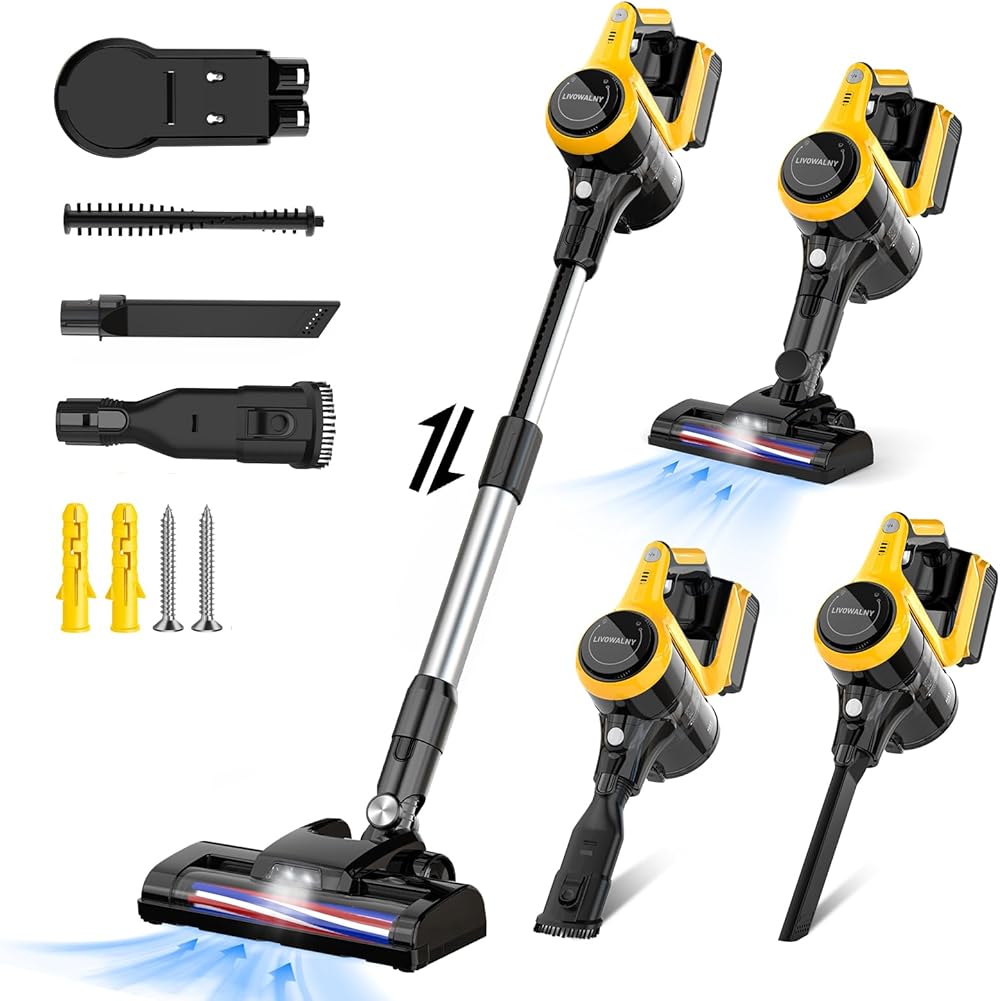 2024 Upgraded Cordless Vacuum Cleaner for DeWALT 20v/18v Battery, 6 in 1 Lightweight Stick Vacuum with Wall Mount, 150W 12Kpa Lightweight Vacuum Cleaner with LED Brush Head for Hardwood Floor Carpet