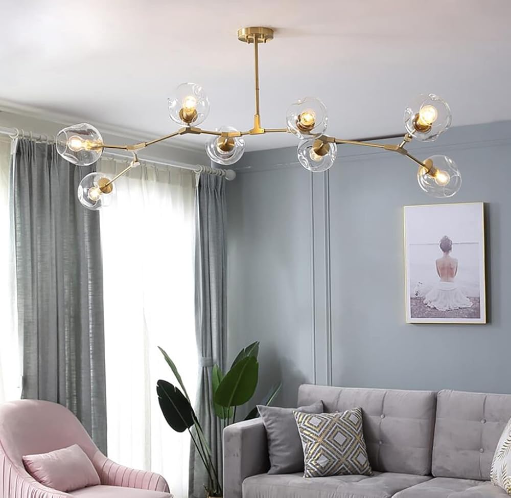 Flashing God Gold Chandeliers for Dining Room 8-Light Mid Century Modern Sputnik Chandeliers Clear Glass Ceiling Light Fixture Chandelier for Living Room & Kitchen Island