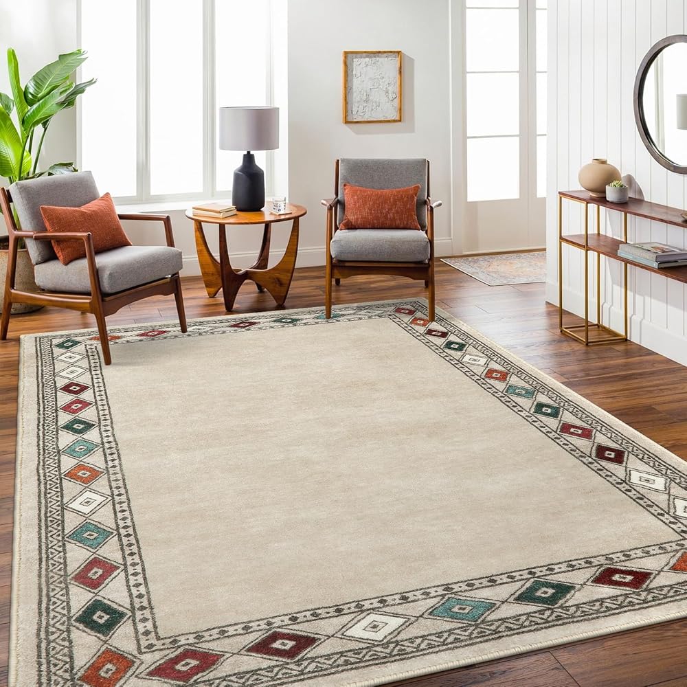 Lahome Modern Bordered Area Rug 6x9 Washable Rug, Ultra-Thin Large Beige Rugs for Living Room Office, Non Slip Soft Bedroom Rugs Easy-Cleaning Carpet Throw Rug for Dining Room (6x9ft,Beige)