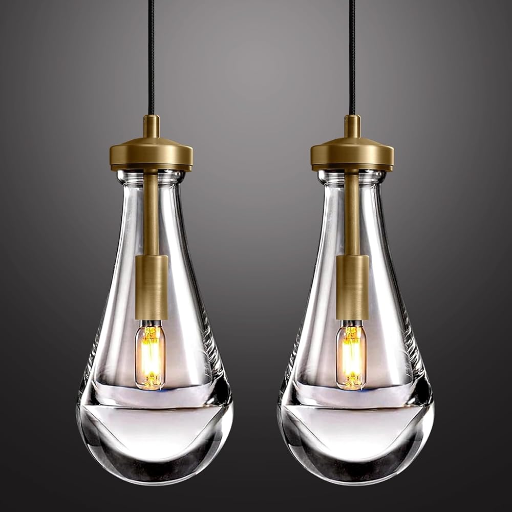 Raindrop Pendant Lights Set of 2,Kitchen Island Hanging Light Fixtures, Modern Art Raindrop Clear Solid Glass Chandelier for Dining Room for Porch, Corridor, Living Room