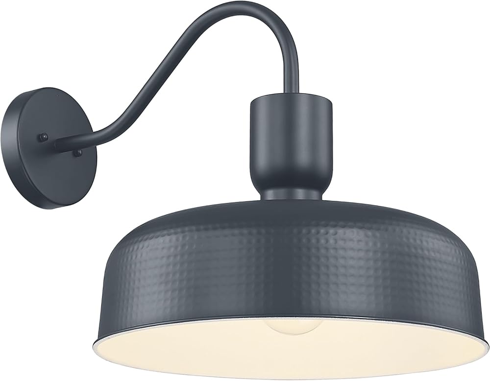 Darkaway Gooseneck Outdoor Light Fixture, Large Industrial Barn Wall Sconce Farmhouse Exterior Wall Mount Lighting with Hammered 18inch Dome Metal Shade for House Garage Porch Entry Hallway