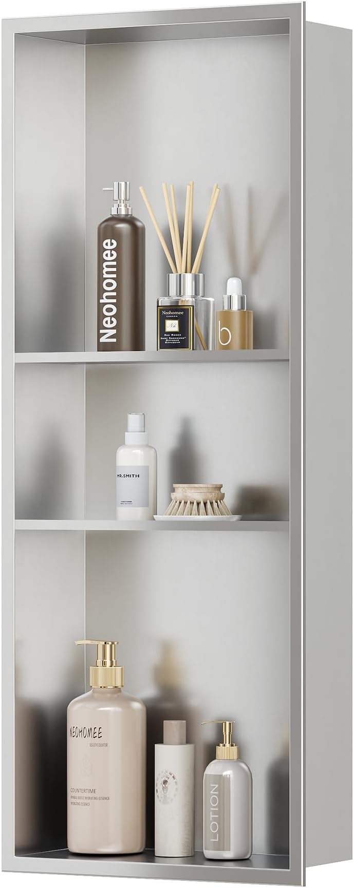 Neodrain 30X12Inch Shower Niche, 3 Layers Brushed Wall Niche Stainless Steel Wall Niche NO Tile Needed Recessed Niche Shower for Bathroom Storage