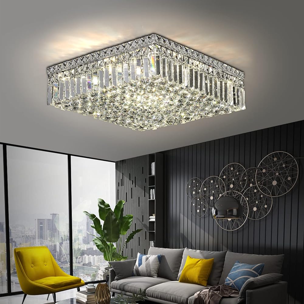 12-Lights Modern Flush Mount Ceiling Light Fixtures,Elegant Crystal Chandelier Pendant Ceiling Lamp for Bedroom,Living Room,Dining Room,Hallway H5.9 x W20 x L20 (Bulbs Not Included) Square