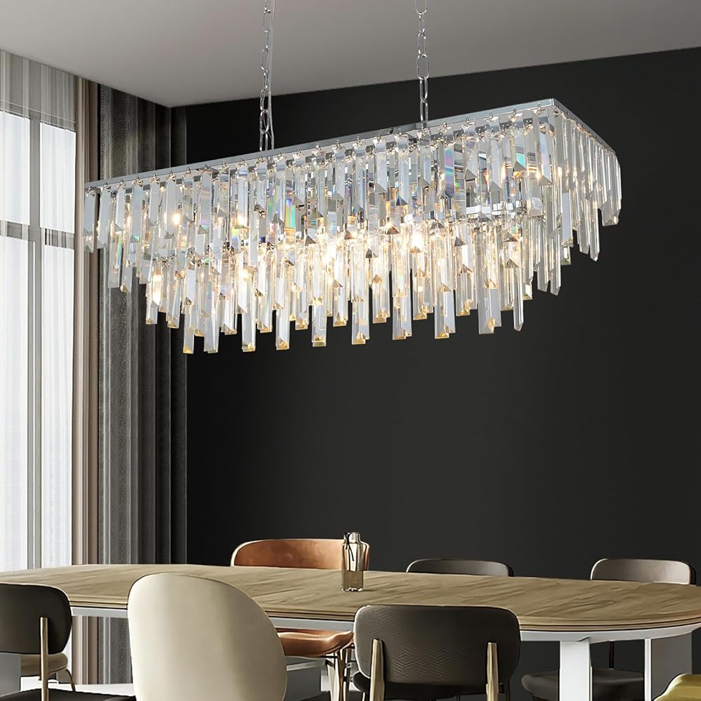 Chrome K9 Crystal Chandelier Rectangle Modern Rectangular Pendant Lighting Fixture for Dining Room Kitchen Island Bedroom L31.5''