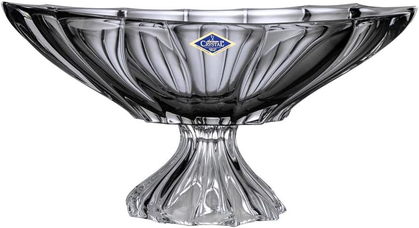 Bohemia Crystal AU52663 14.5"×8" Oval Footed Bowl, Fruit Bowl, Home decor centerpiece, Jardiniera Plantica Smoky Gray