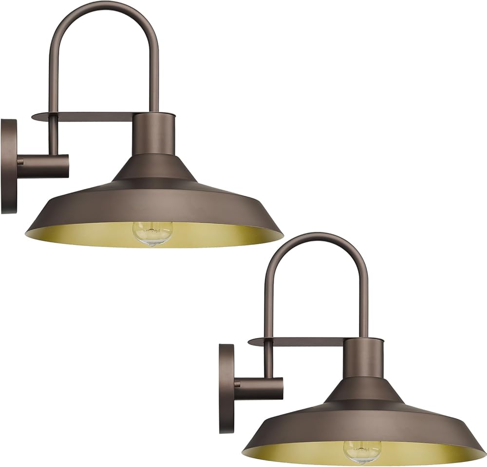 Darkaway Large Gooseneck Barn Light, 16 Inch Metal Dome Shade Farmhouse Wall Sconces, Industrial Indoor Wall Lamp Outside for House Hallway Bedroom Dining Room Living Room (2 pcak,Bronze)