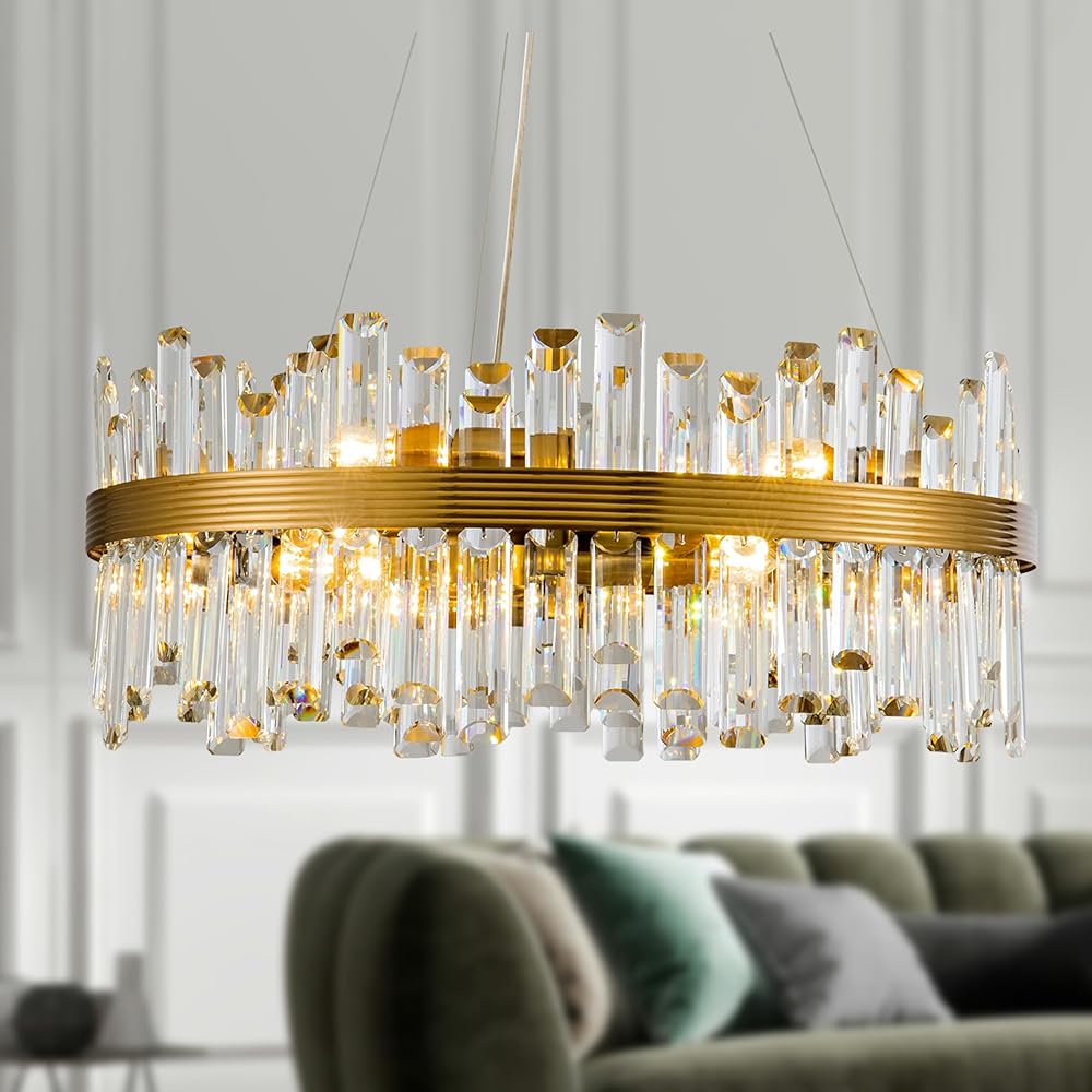 Macarena Gold Modern Crystal Chandelier,Large Luxury 2-Tiers Crystal Raindrop Round Dining Room Chandelier Light Fixture, Glam Circle Pendant Hanging Chandeliers for Bedroom Living Room Kitchen 24"