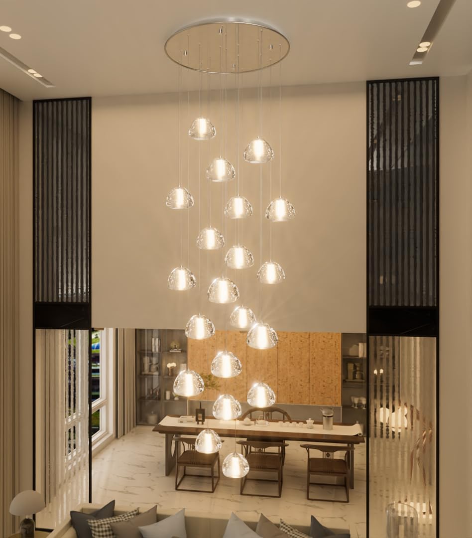 20-Light Modern Chandeliers for Entrance High Ceiling Chandelier Living Room Lights Fixture LED Ceiling Lamp Bubble Crystal Adjust Hanging Pendants Lighting for Stairwell Hallway Foyer