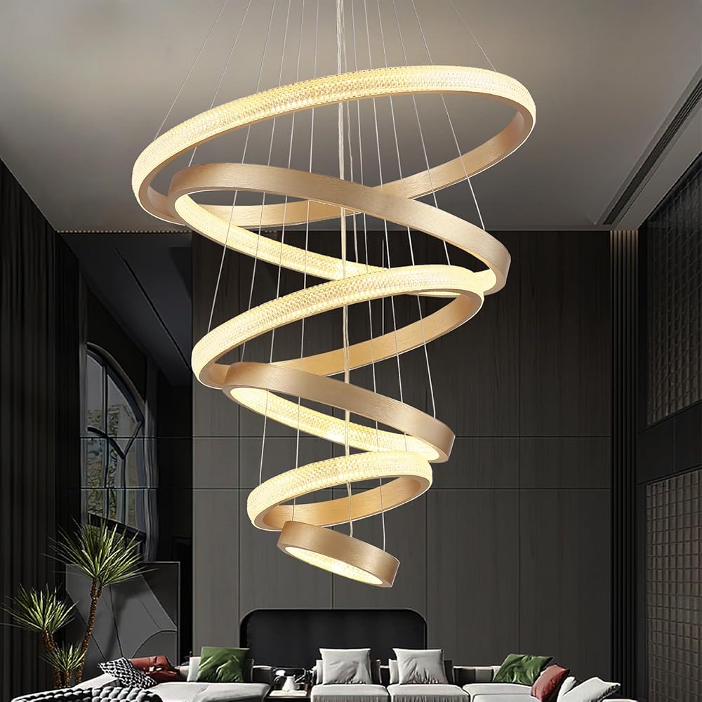 Modern LED Light,6 Rings Gold Chandeliers Lighting Fixture for High Ceiling Staircase Dining Living Room Foyer (D27.55'')