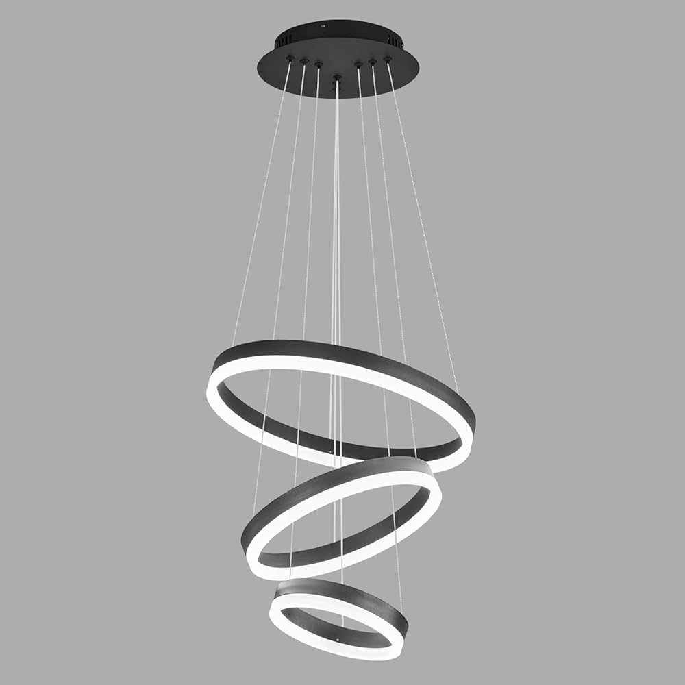 Modern LED Chandelier Lighting 3 Rings Black Chandelier Contemporary Ceiling Pendant Light Fixture for Staircase Foyer High Ceiling Living Room 6000K Cool White